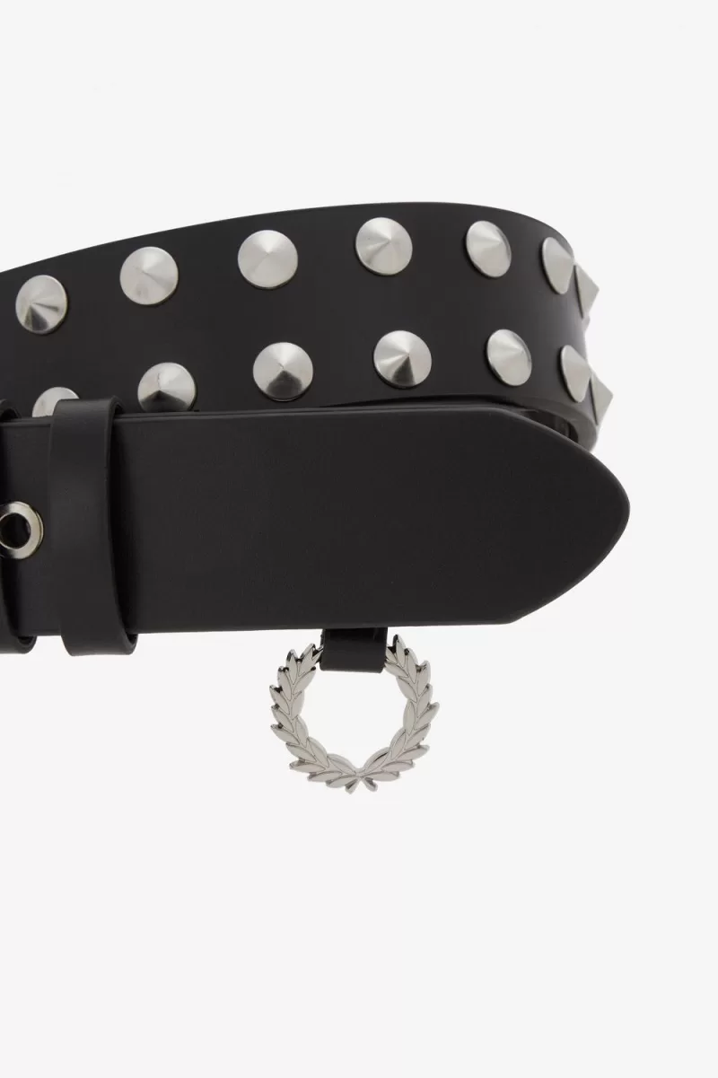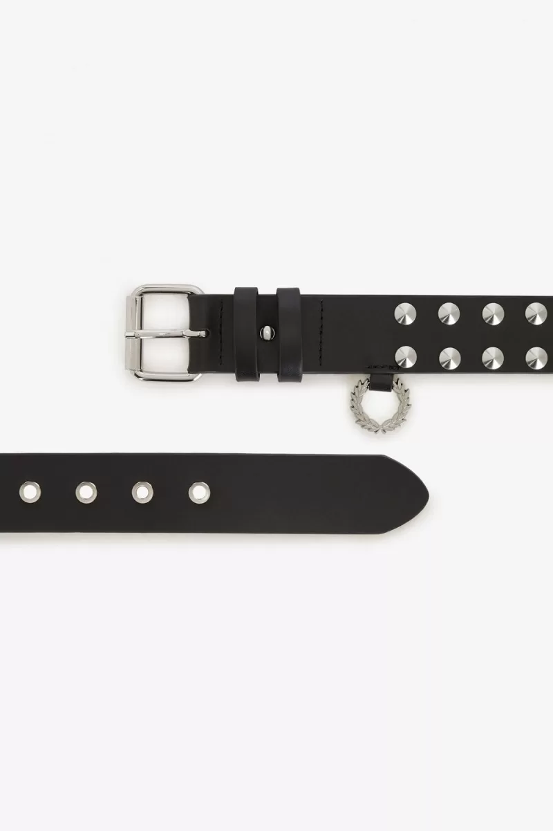 Raf Simons reinterprets familiar Fred Perry silhouettes with the sensibilities of his eponymous line and influenced by the clothes worn at raves, club nights and gigs. Inspired by his fascination with utilitarian uniforms and graphics taken from fictional early industrial records of the late ‘70s, our latest Raf Simons collection is as at home on the floor of a techno rave as it is at a packed band show. Our studded leather belt is a reimagined classic, that combines conventional style with a rebellious spirit. To wear the Fred Perry x Raf Simons collection is to feel part of something – the power of youth and belonging.