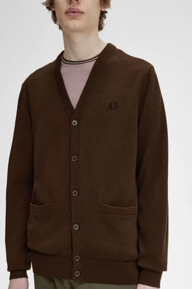 A V-neck cardigan knitted in a blend of cotton and ethically-sourced merino wool.
