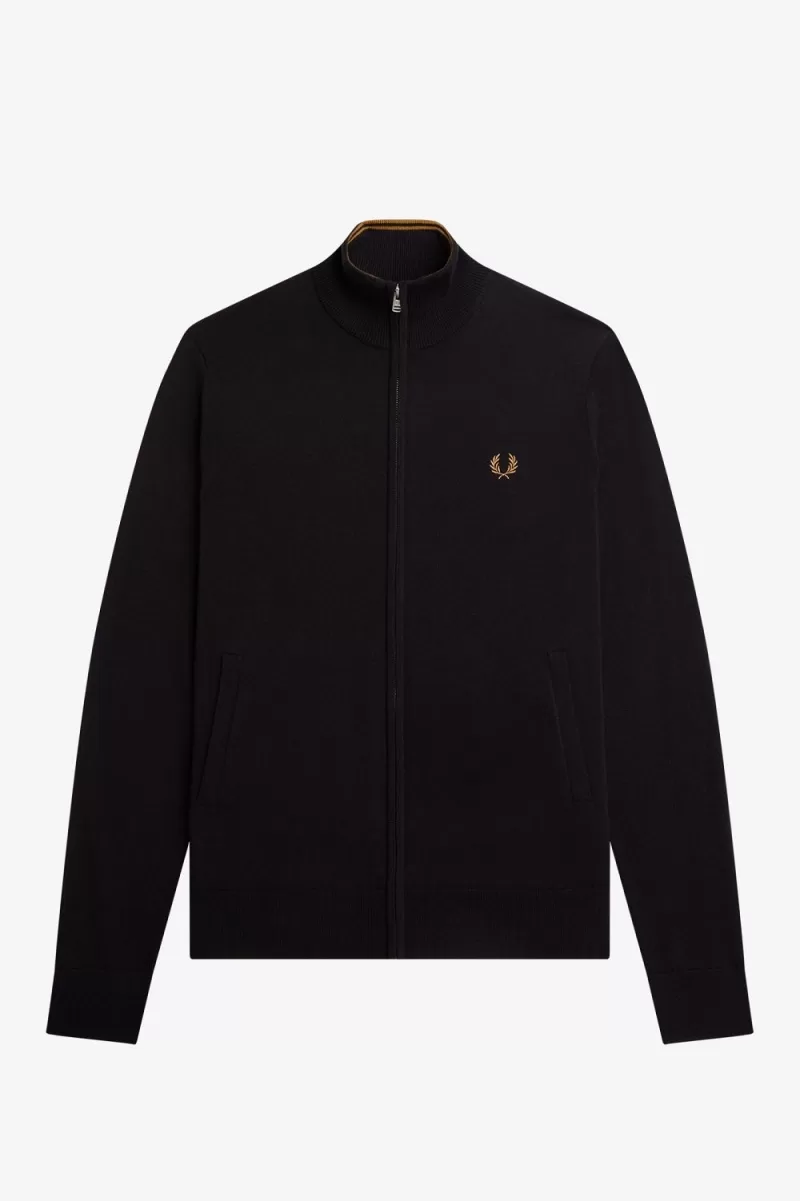 Fred Perry Classic Zip Through Men’s Cardigan Black | XROCG4061
