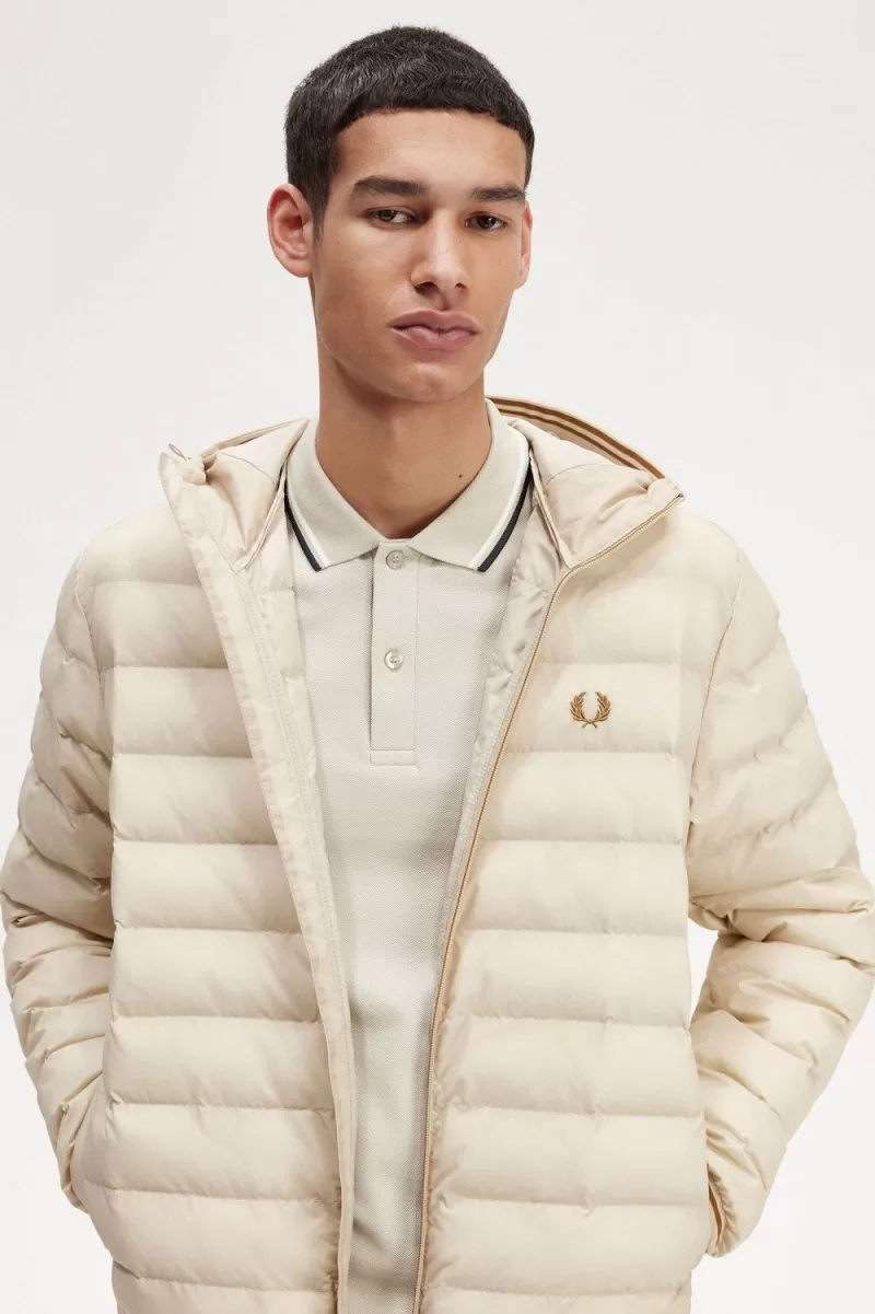 Fred Perry Hooded Insulated Men’s Jackets Oatmeal | DIONP0852