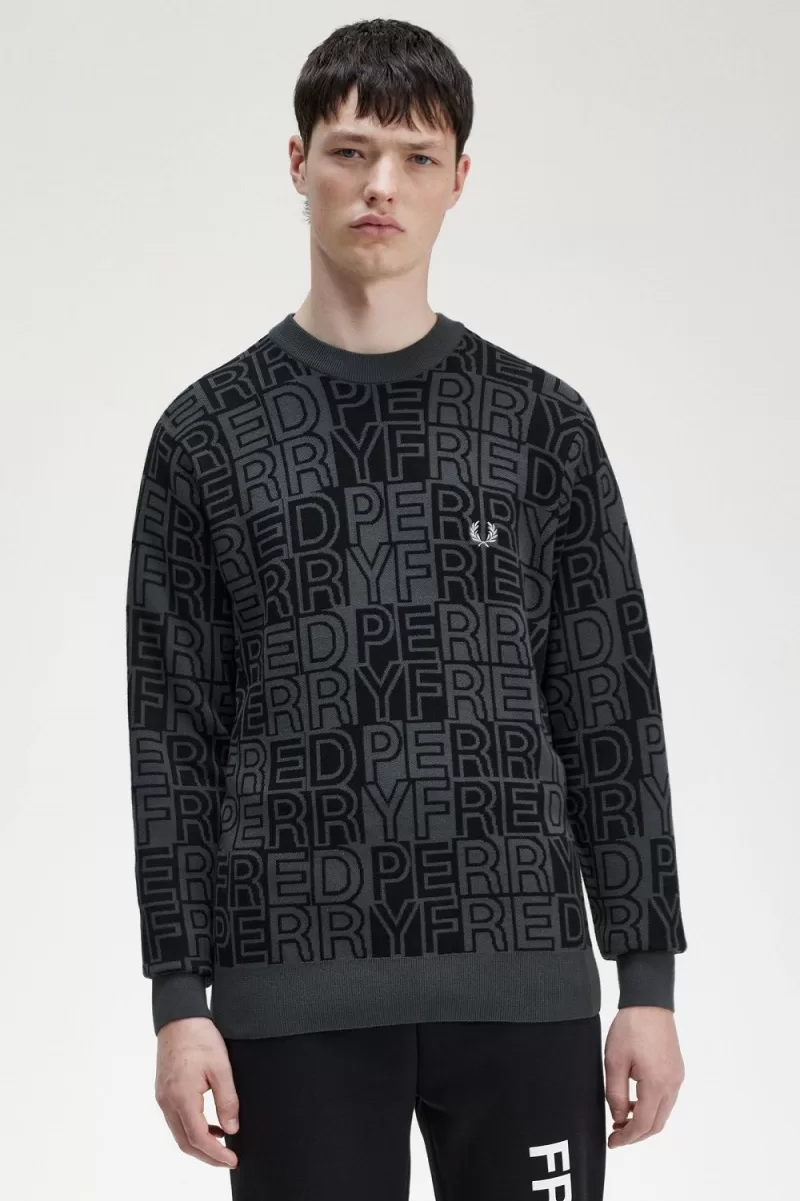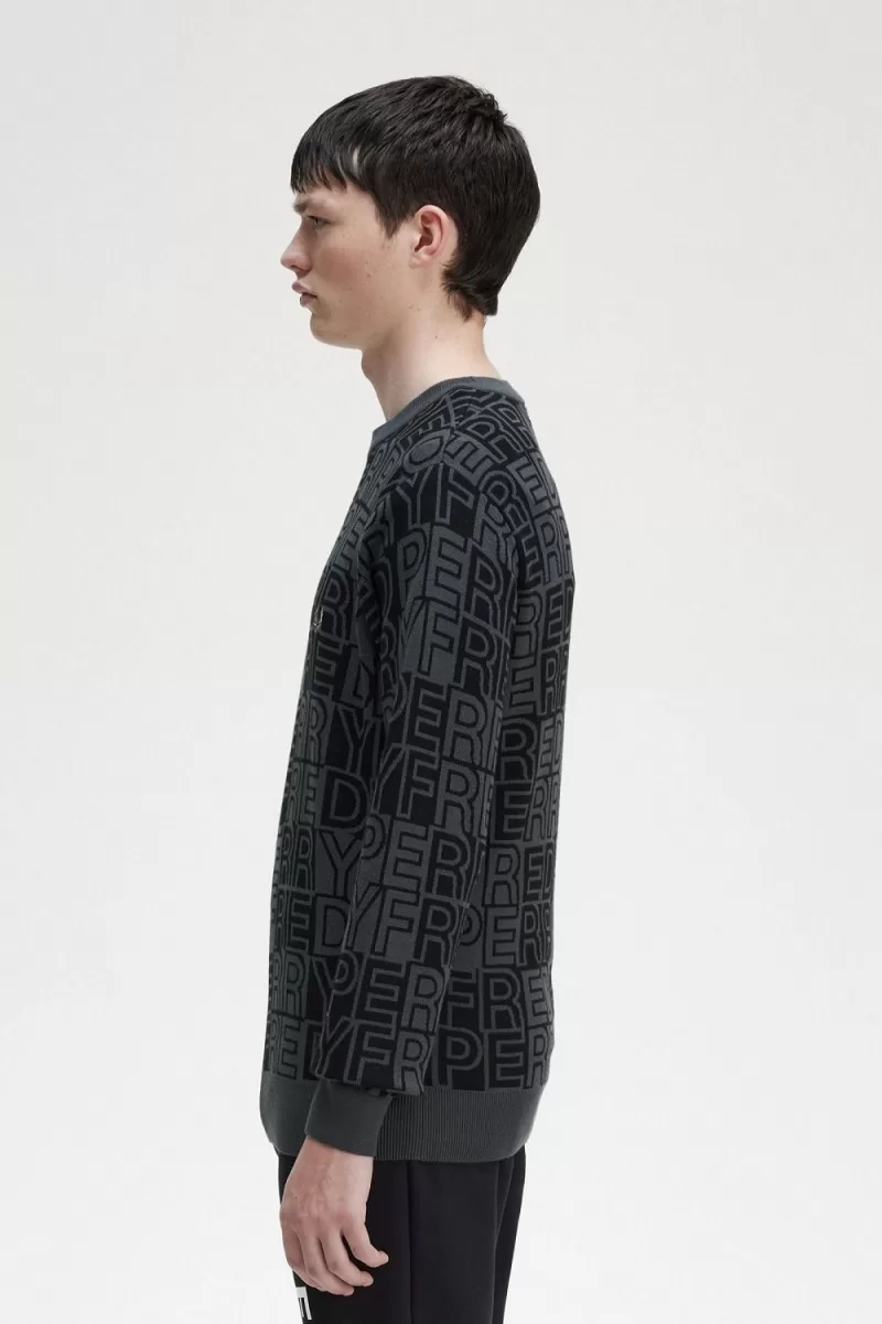 Fred Perry Block Graphic Men’s Jumper Gunmetal | FBNIP5694