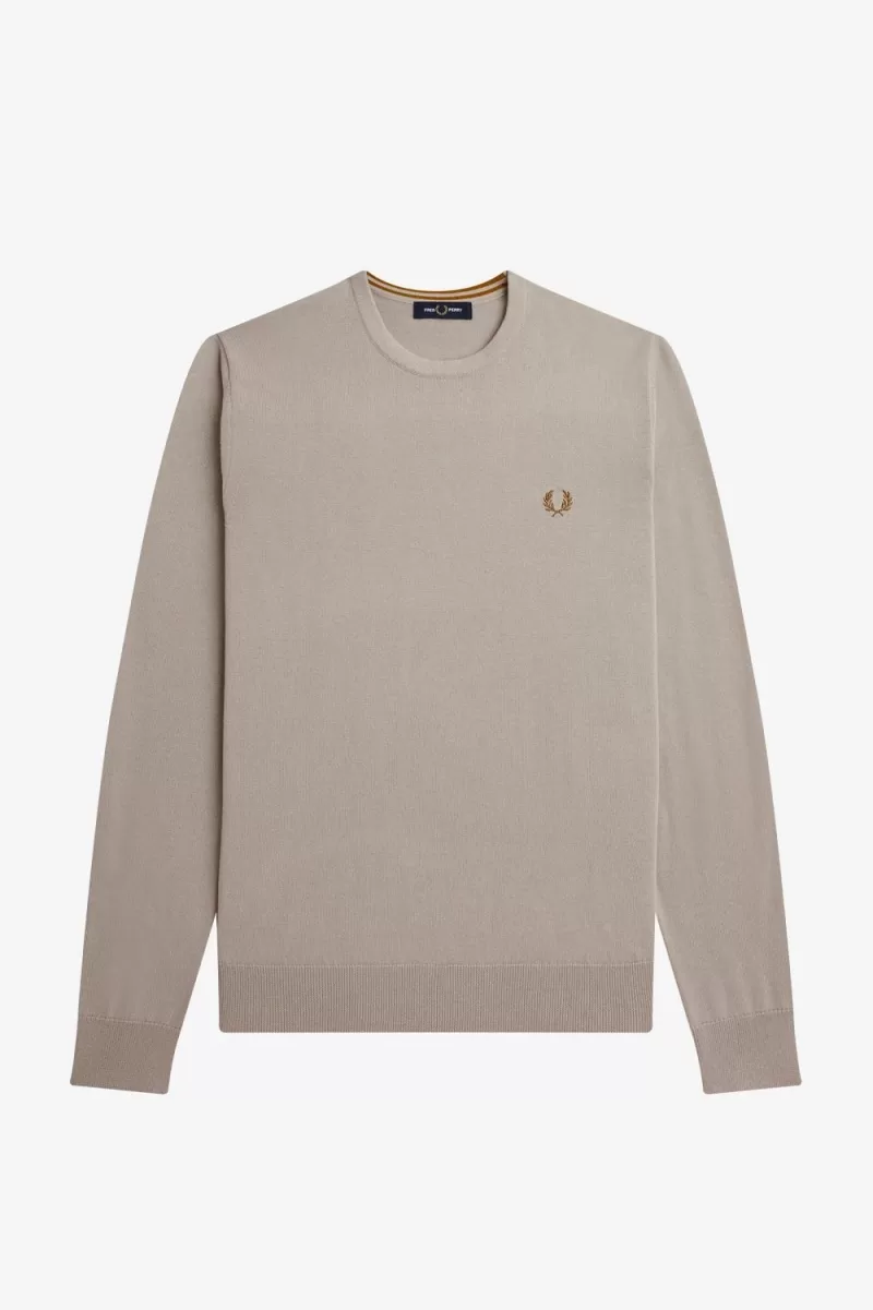 Our classic crew neck jumper is built with a blend of ethically sourced merino wool and cotton for warmth, durability, and a bit of simple luxury. Designed in signature Fred Perry colours with twin tipping inside the neck, this is a smart staple for year-round wear. For warming up on the courts or layering up on the streets.
