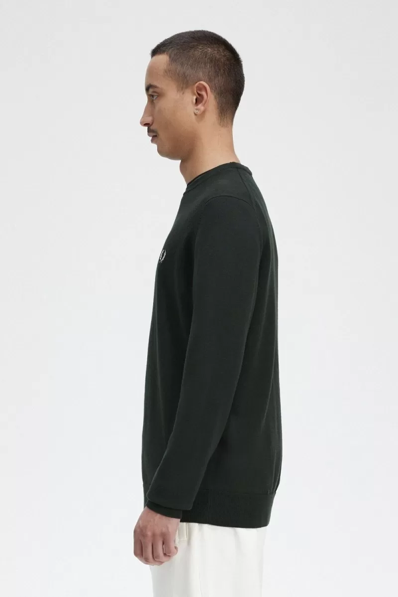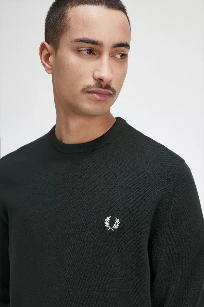 Fred Perry Classic Crew Neck Men’s Jumper Night Green | MUHAB9830
