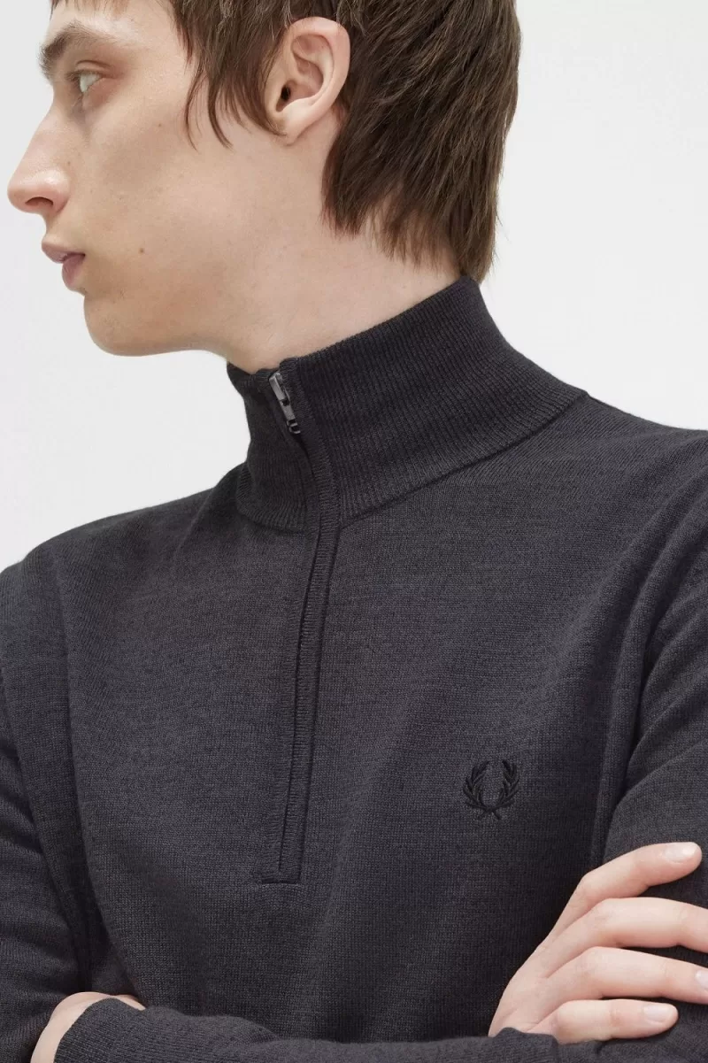 An elevated and comfy knit with a luxuriously soft hand feel, this merino wool blend half zip jumper is an all-season staple. A reliable warm overlayer, smart enough for a night out, with an internally tipped high funnel neck to keep out the chill.