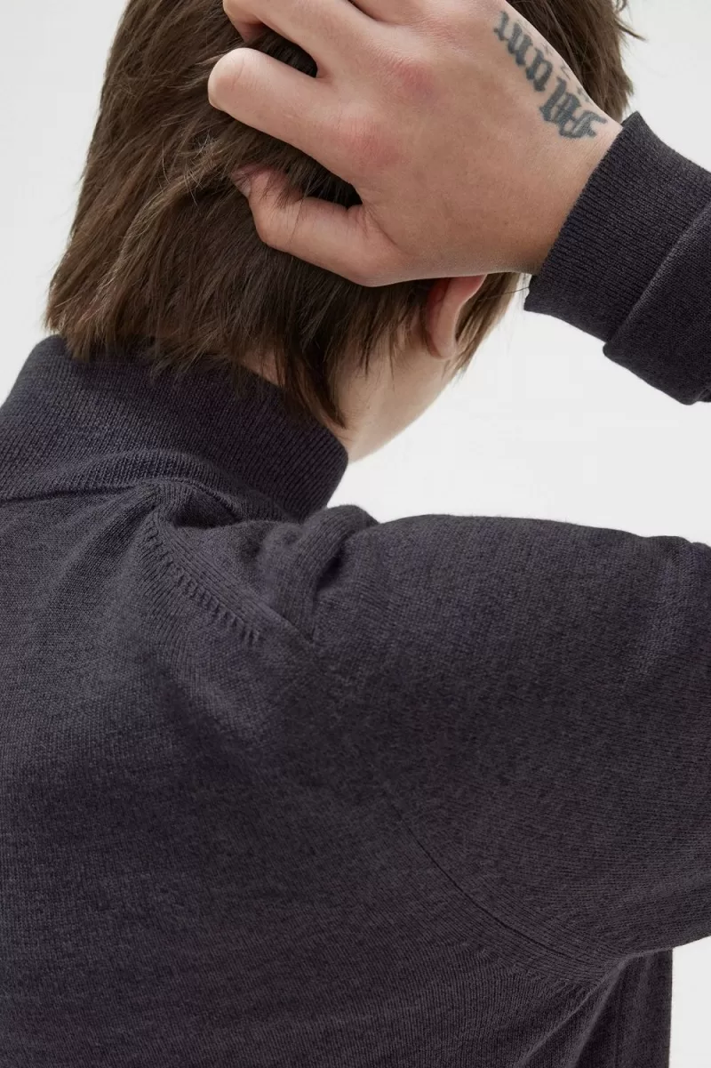 Merino wool and cotton blend knit / Classic fit / Ribbed funnel neck with internal tipping / Ribbed trims / Embroidered Laurel Wreath logo to the left hand chest