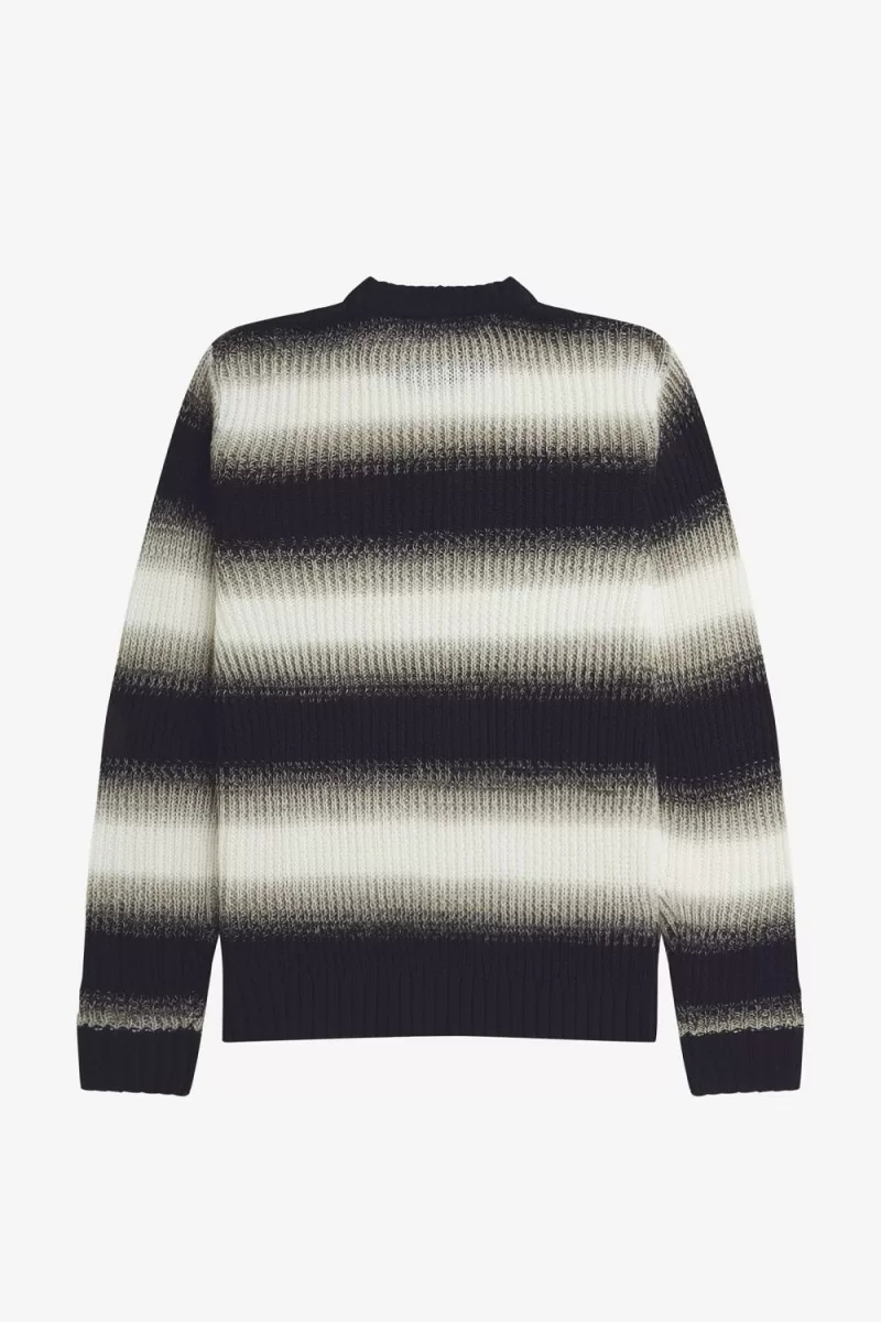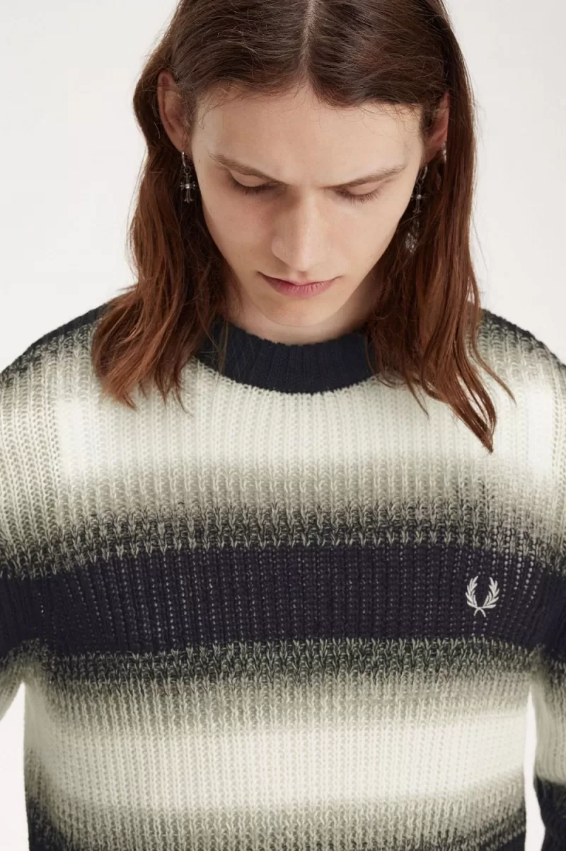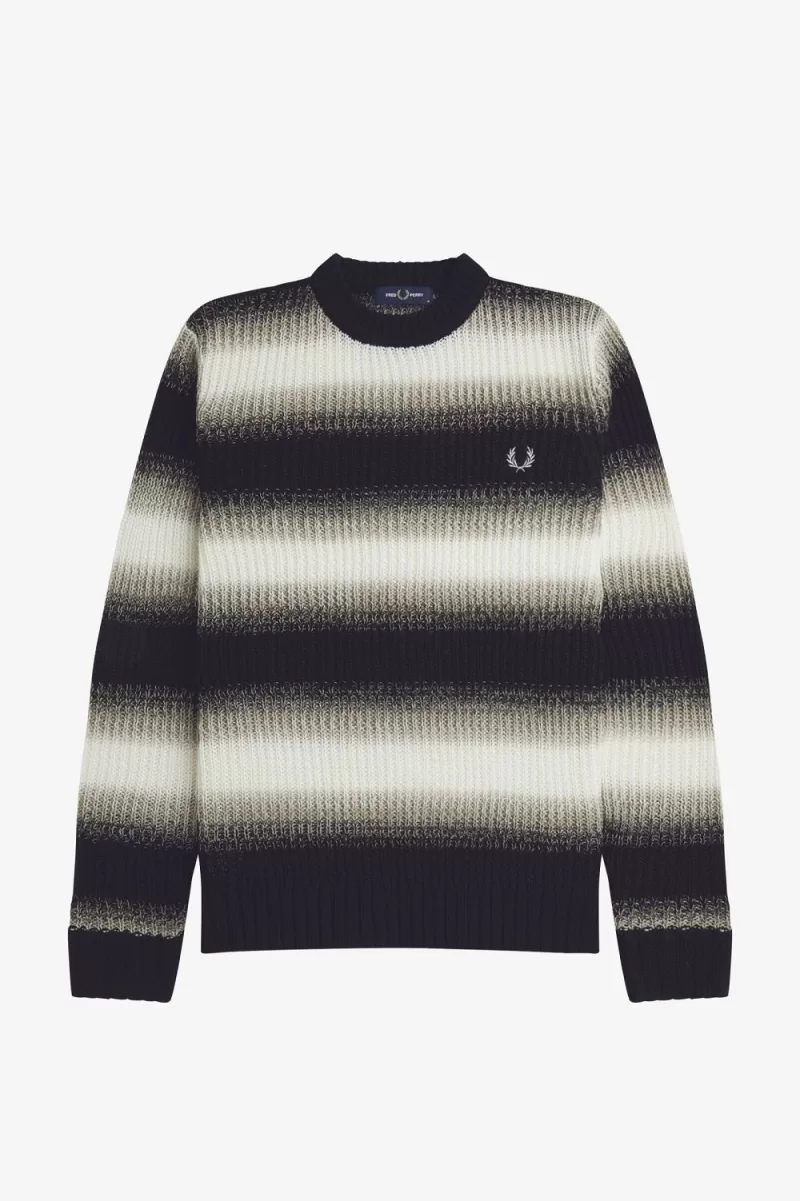 A merino wool blend jumper with a glitchy ombre stripe design.