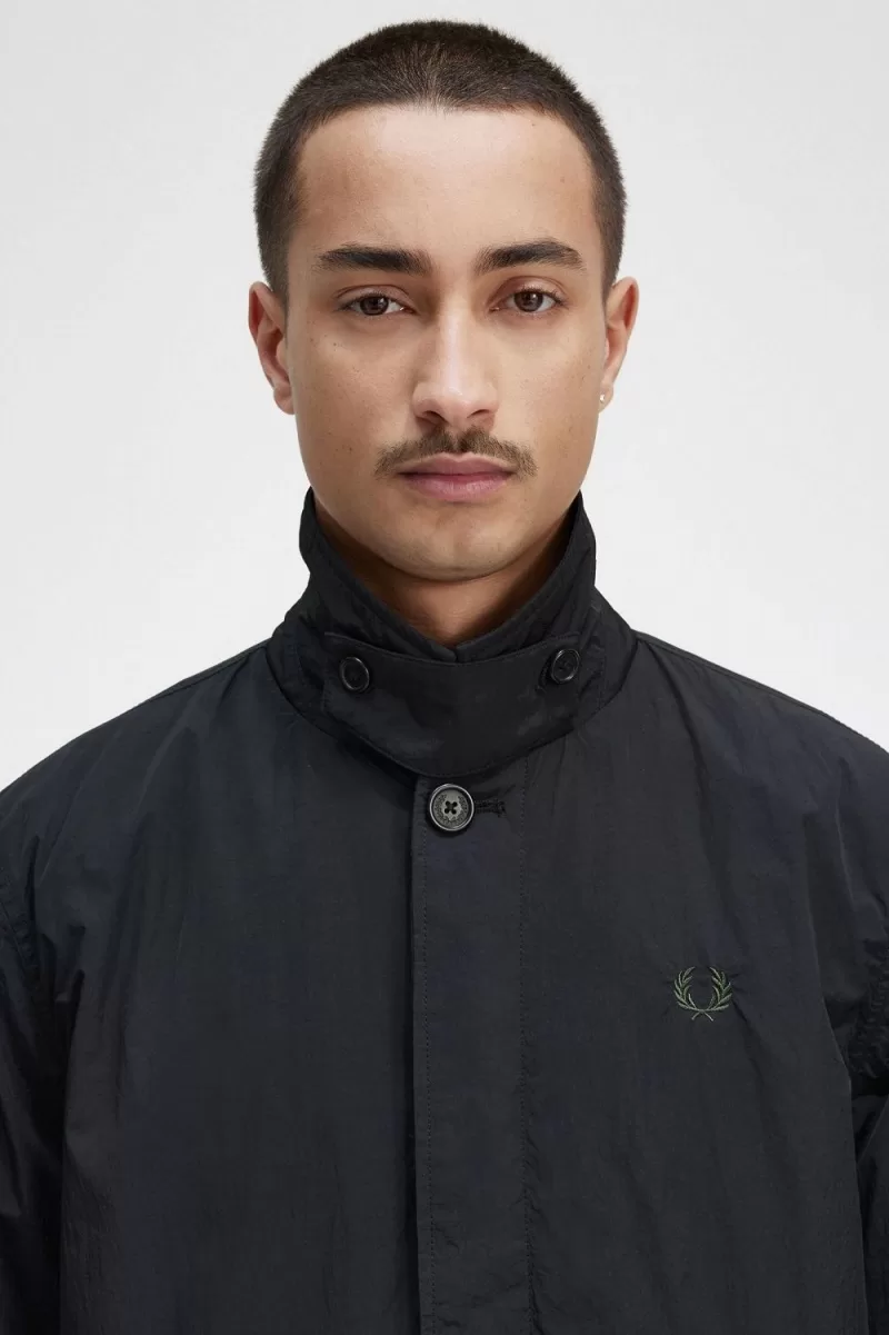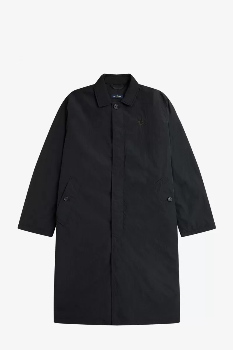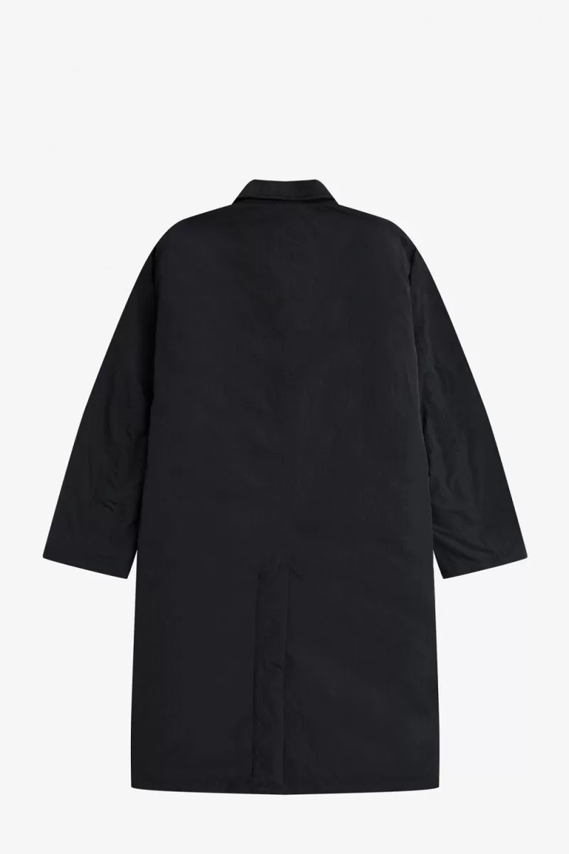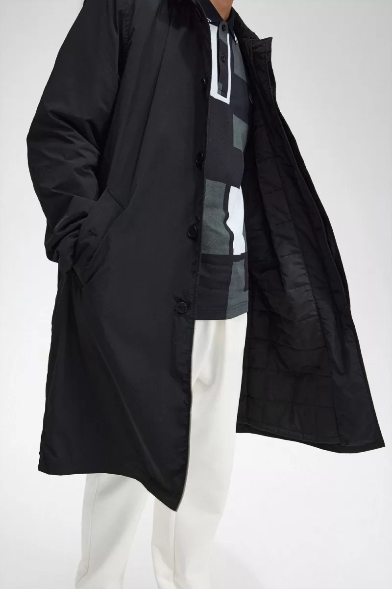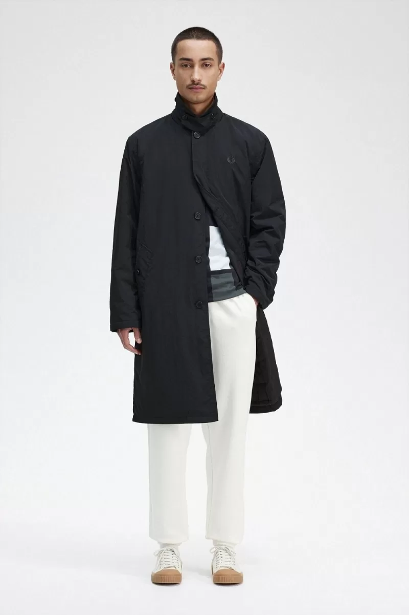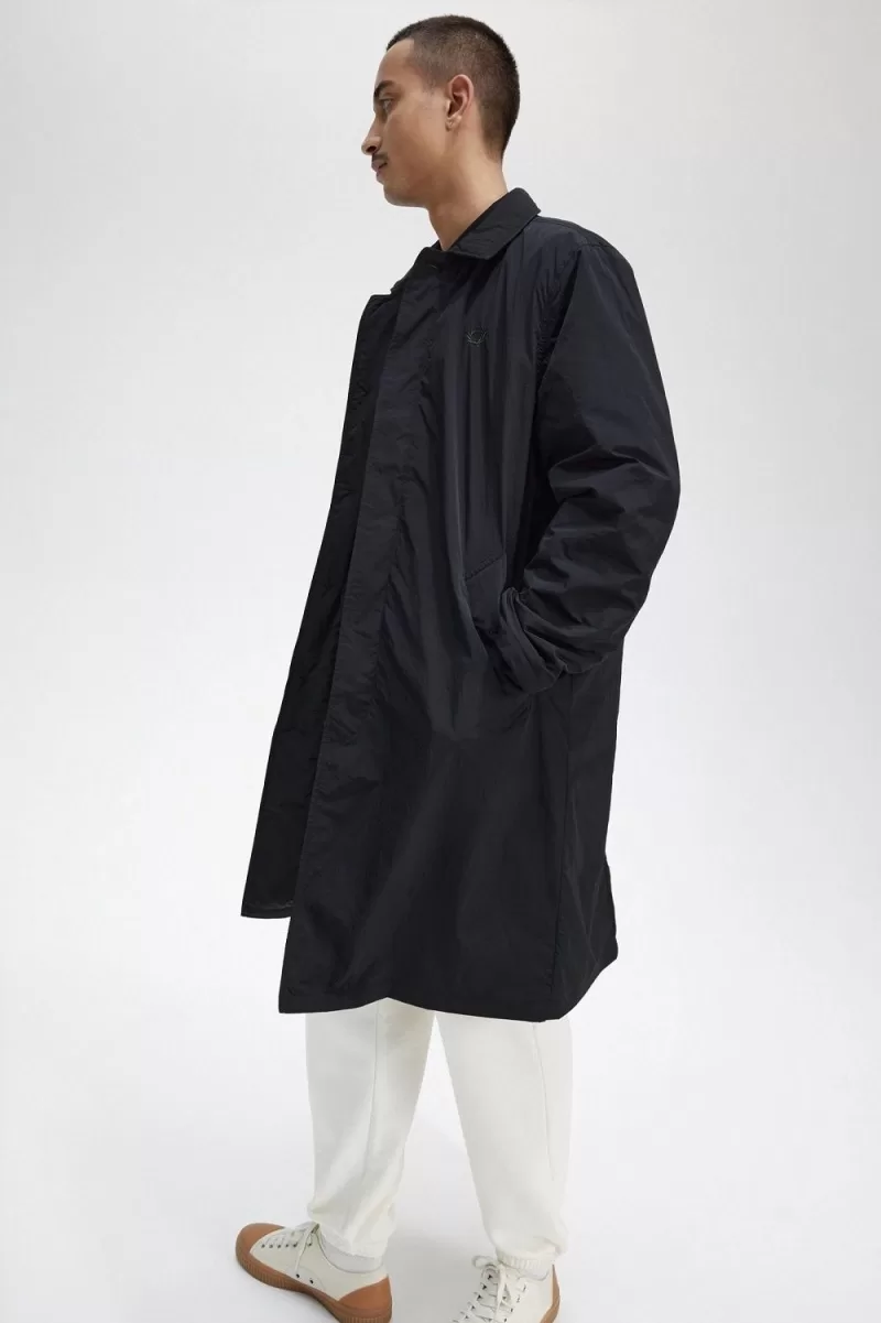 The British weather doesn’t care how much time you spent getting ready. Better keep dry and sharp with our button through mac (while the wadding to the body liner keeps you toasty too).But the mac isn’t just a functional rain cover. Its longline form and button up collar make it a stylish upgrade to your out-out outfit. With classic Fred Perry styling including branded buttons to the neck and throat latch and the embroidered Laurel Wreath logo, it makes good sense, but it looks good too.