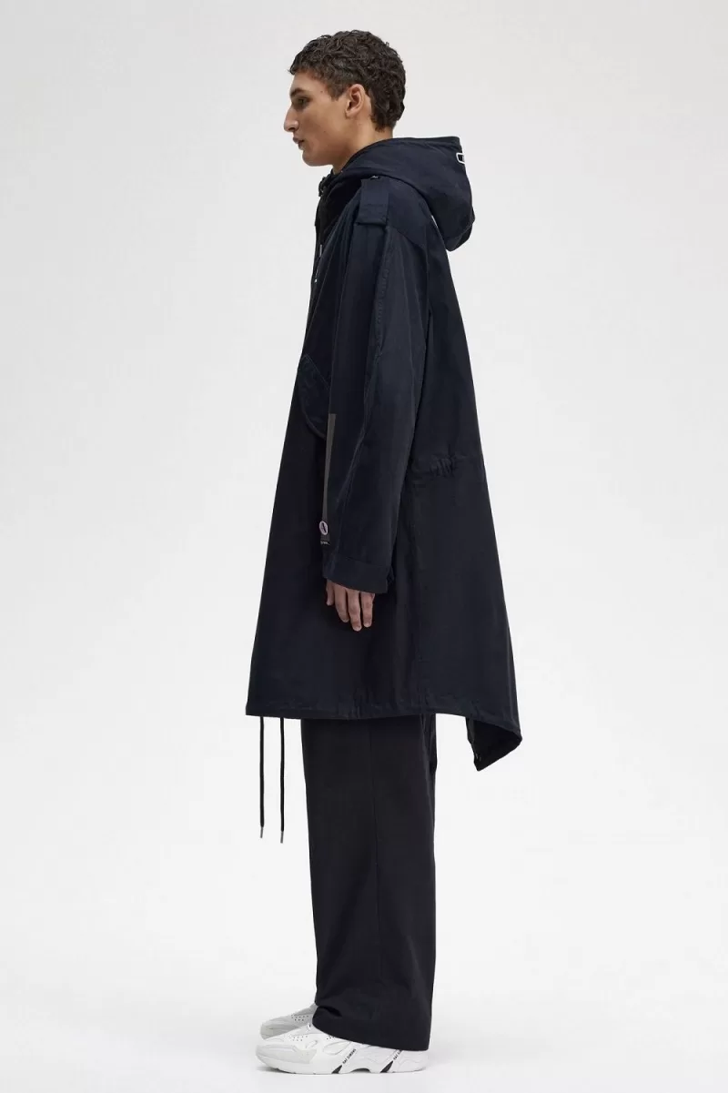 Cotton shell fabric / Oversized fit with fishtail hem and elasticated cuffs with adjuster tab / Drawcords at the hood, waist and hem with shoulder epaulettes / Shaped flap pockets with concealed press stud closure / Bespoke graphic prints on sleeve and back, with hood patch