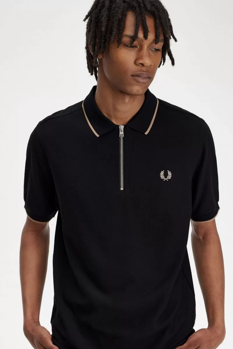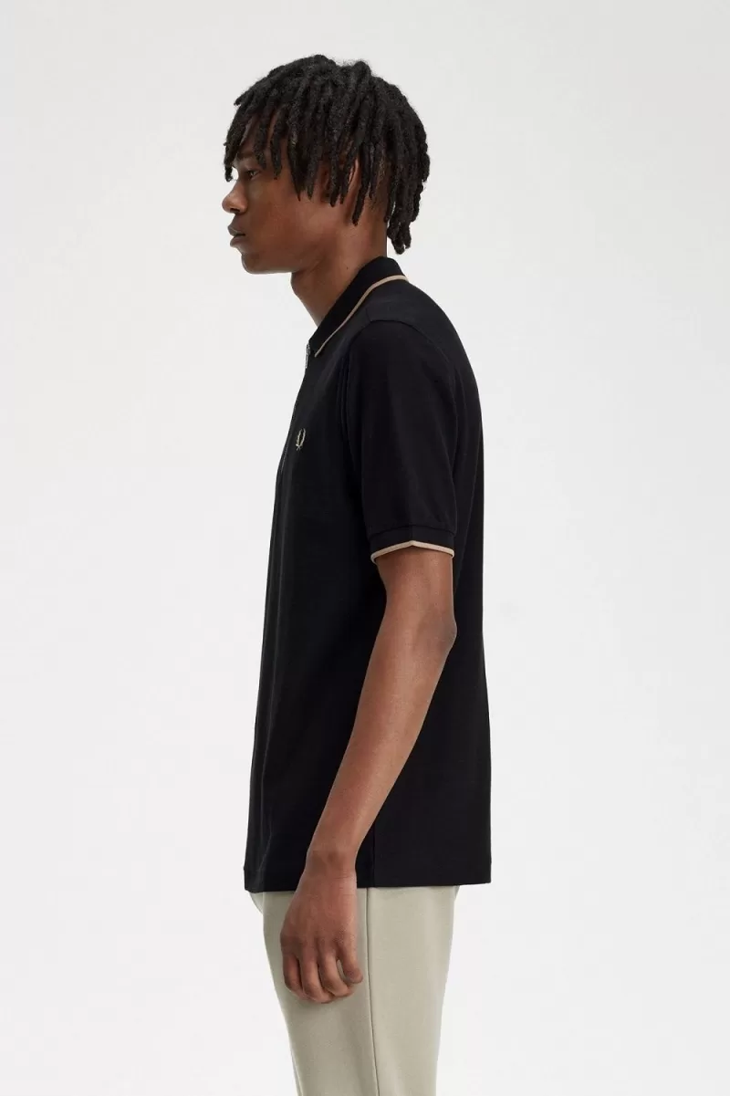 Fred Perry Crepe Pique Zip Neck Men’s Polo Shirt Black | ANKMW6105