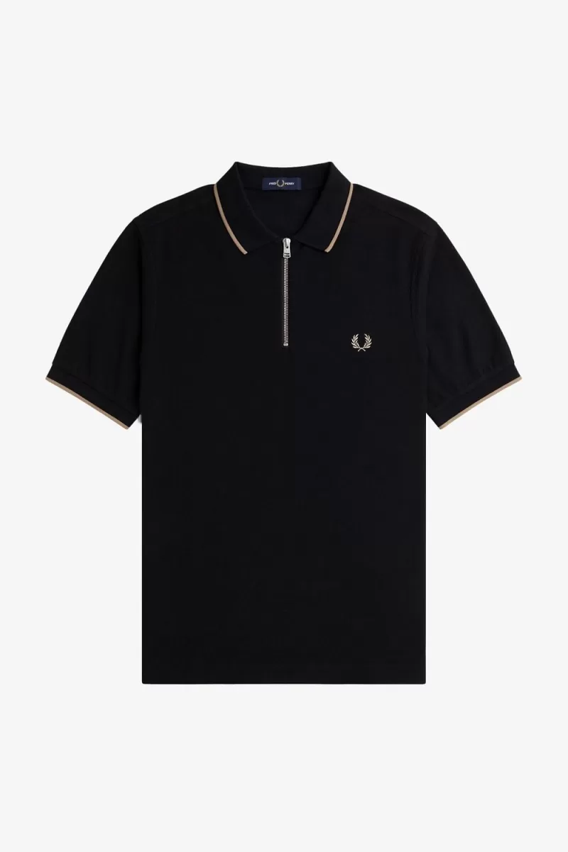 3 reviews for Fred Perry Crepe Pique Zip Neck Men’s Polo Shirt Black | ANKMW6105