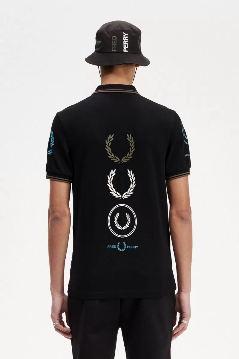 The crown of leaves was awarded to Fred by the Wimbledon All England Club three years in a row. Today, symbolising individuality and belonging, it’s the finishing touch on all of our designs – or in some cases, the main event. Our graphic branded Fred Perry shirt is built for comfort in sport, but designed to stand out on the street.
