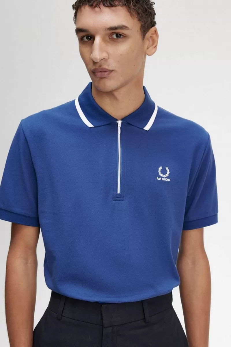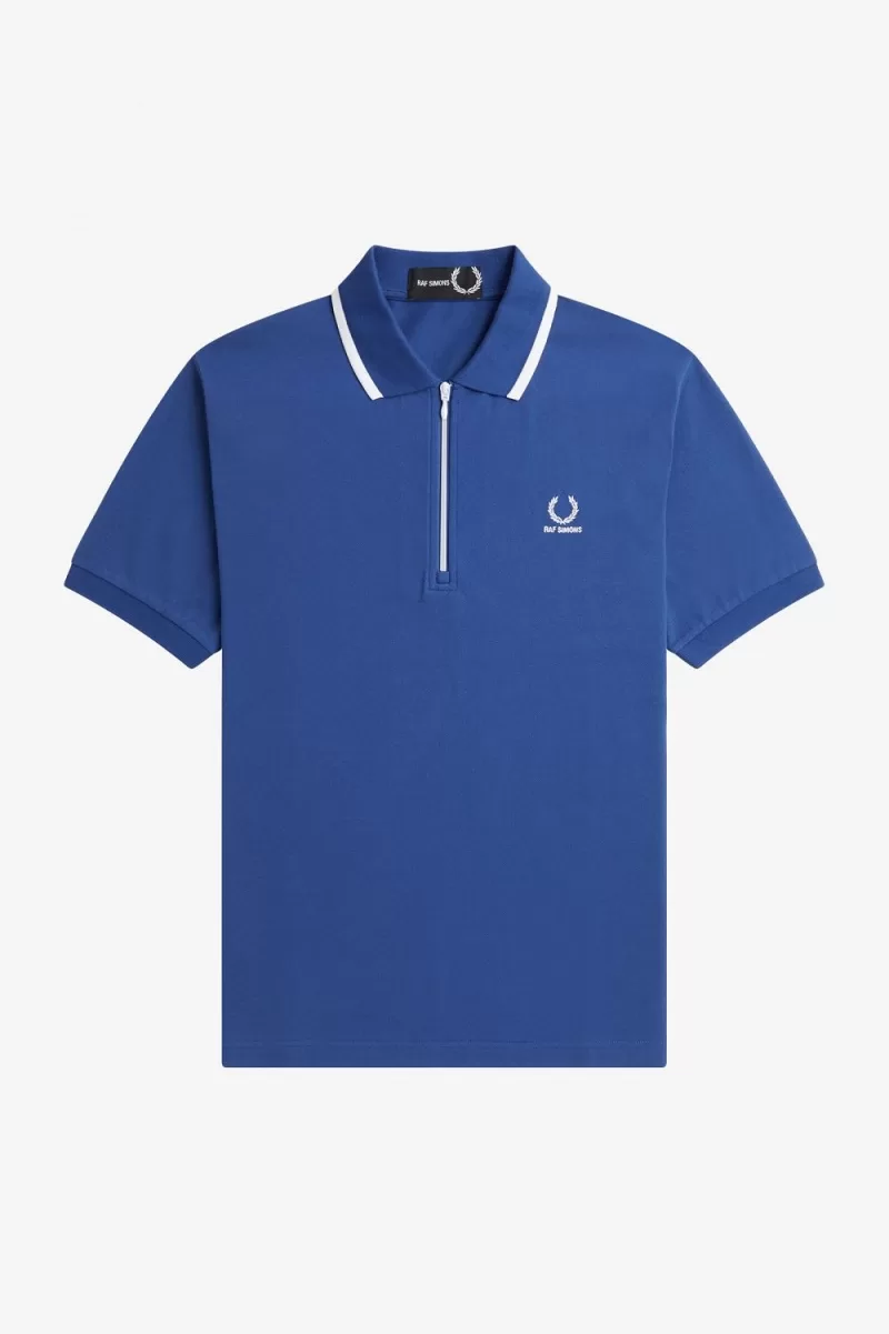 We collaborate with Raf Simons on a half zip polo shirt in fine cotton piqué, designed with signature Fred Perry tipping to the collar.