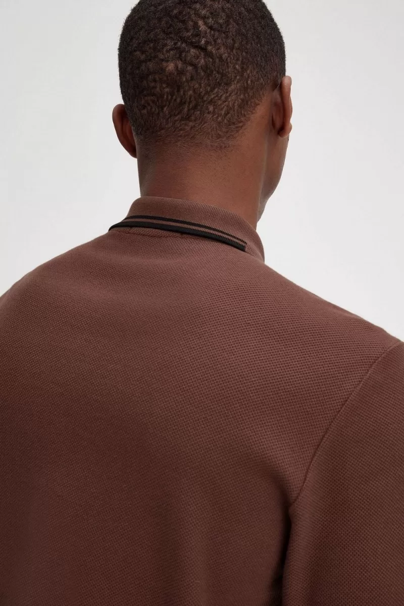 Fred Perry Honeycomb Cotton Long Sleeve Men’s Polo Shirt Whisky Brown | CRSBD5321