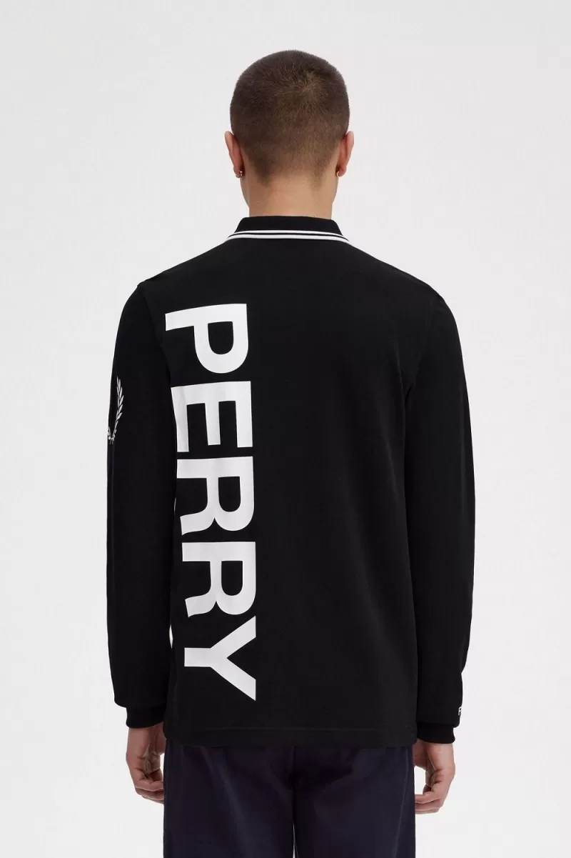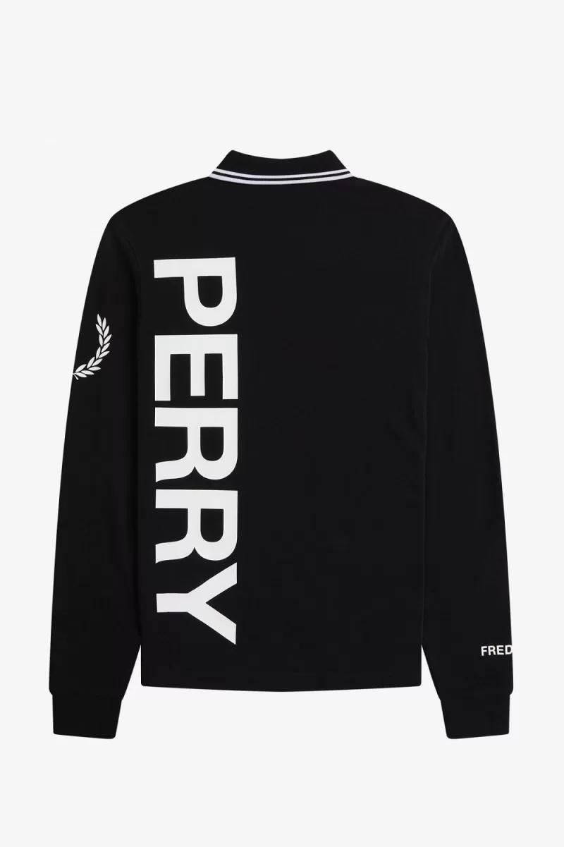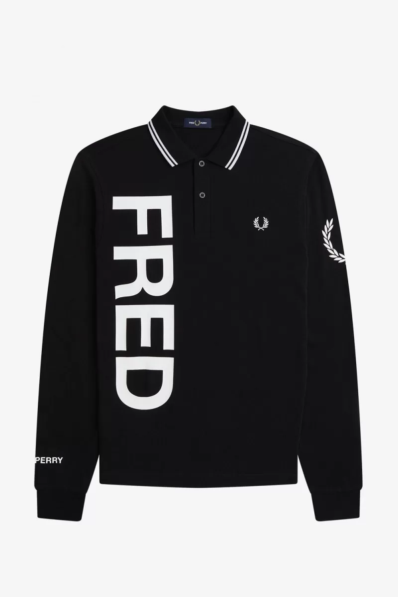 Cotton piqué fabric / Classic fit / Contrast twin tipped collar with box placket / Printed Fred Perry branding on the arm, rear, and front / Embroidered laurel wreath logo to the left hand chest