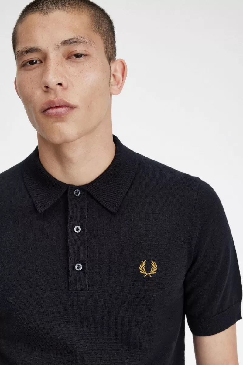 Fred Perry Classic Knitted Men’s Shirt Navy | JCBYE7594