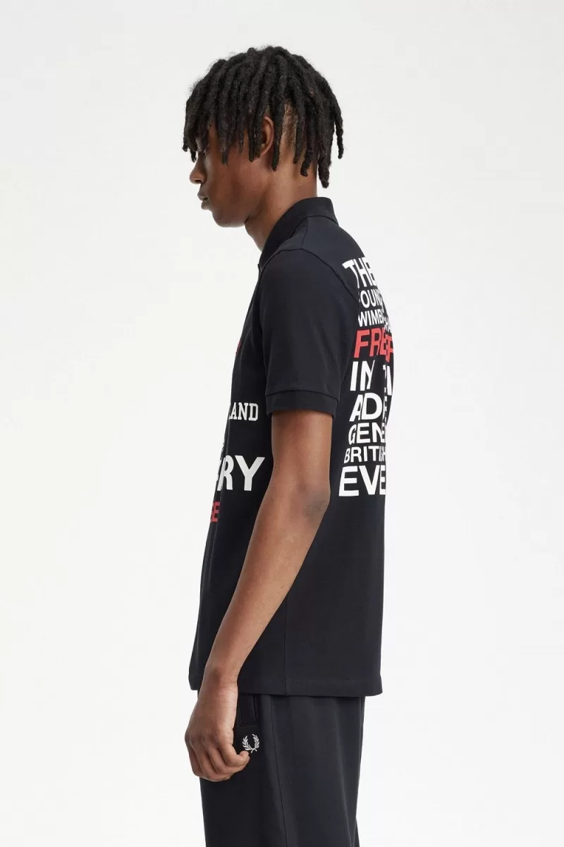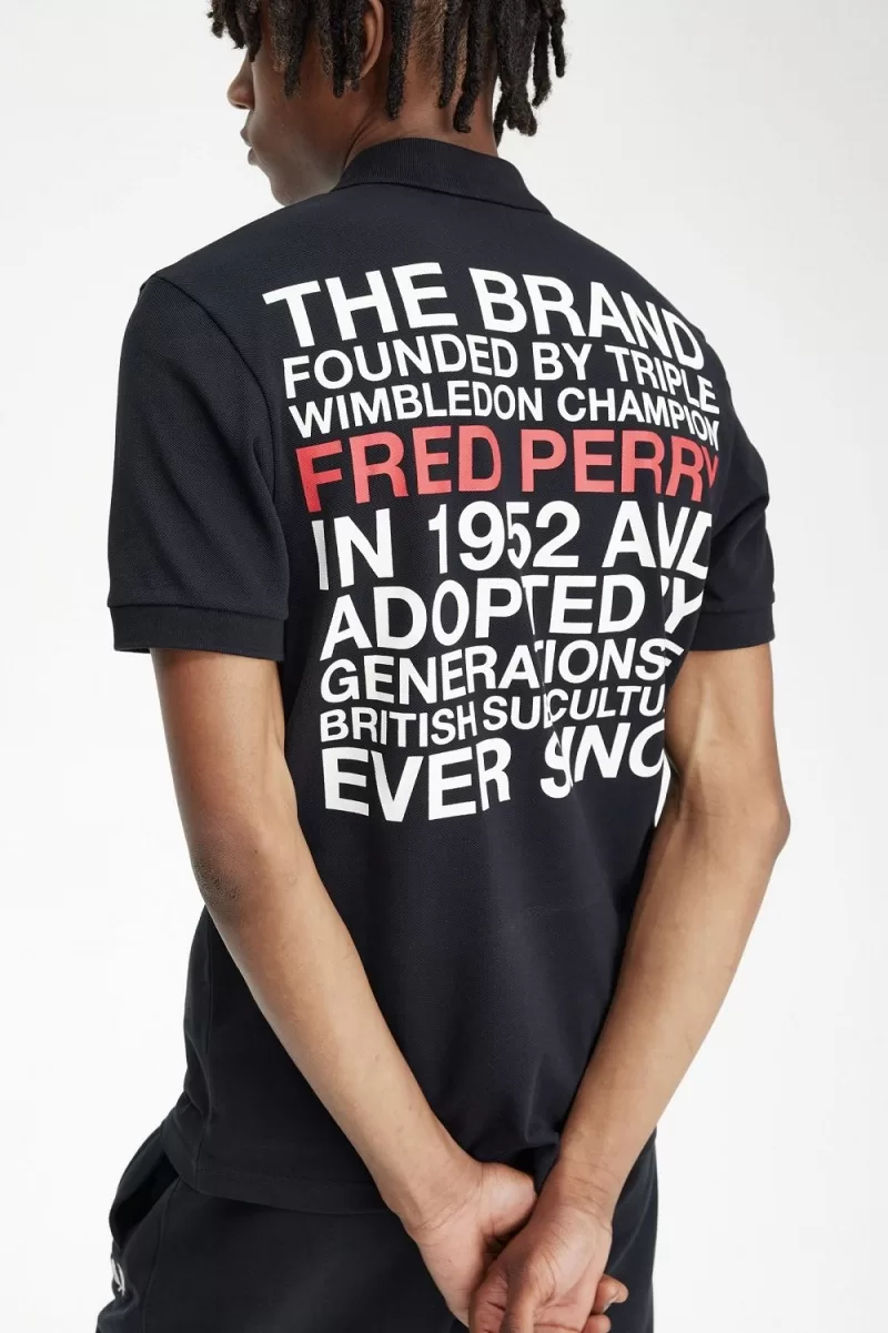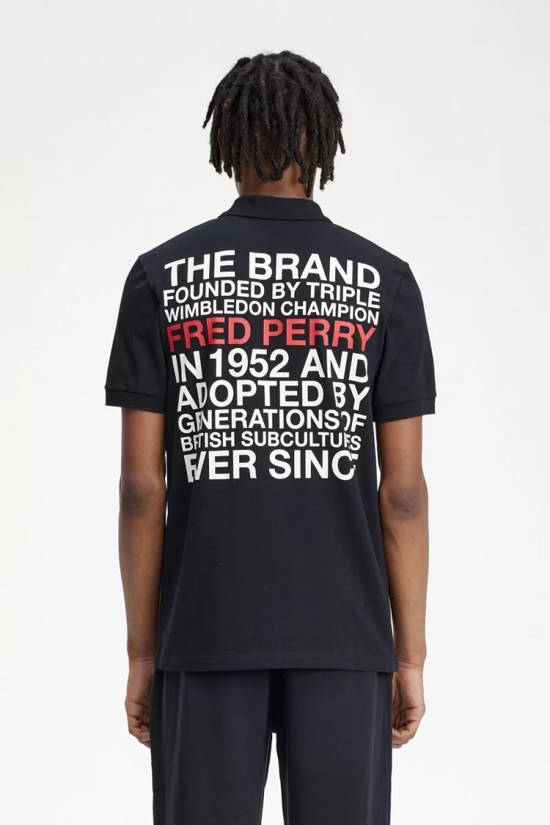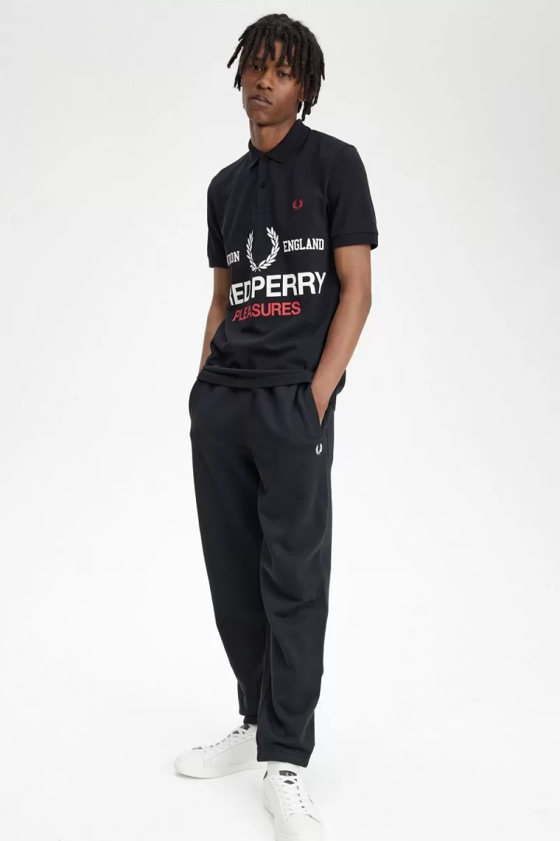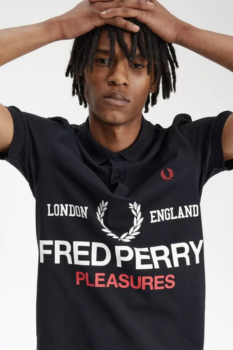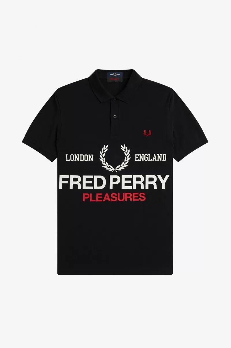 U.S. lifestyle brand Pleasures put their stamp on the Fred Perry shirt, inspired by the Los Angeles punk scene. Made in our signature fit and cotton pique, with graphic logo and lettering print across the chest and back.