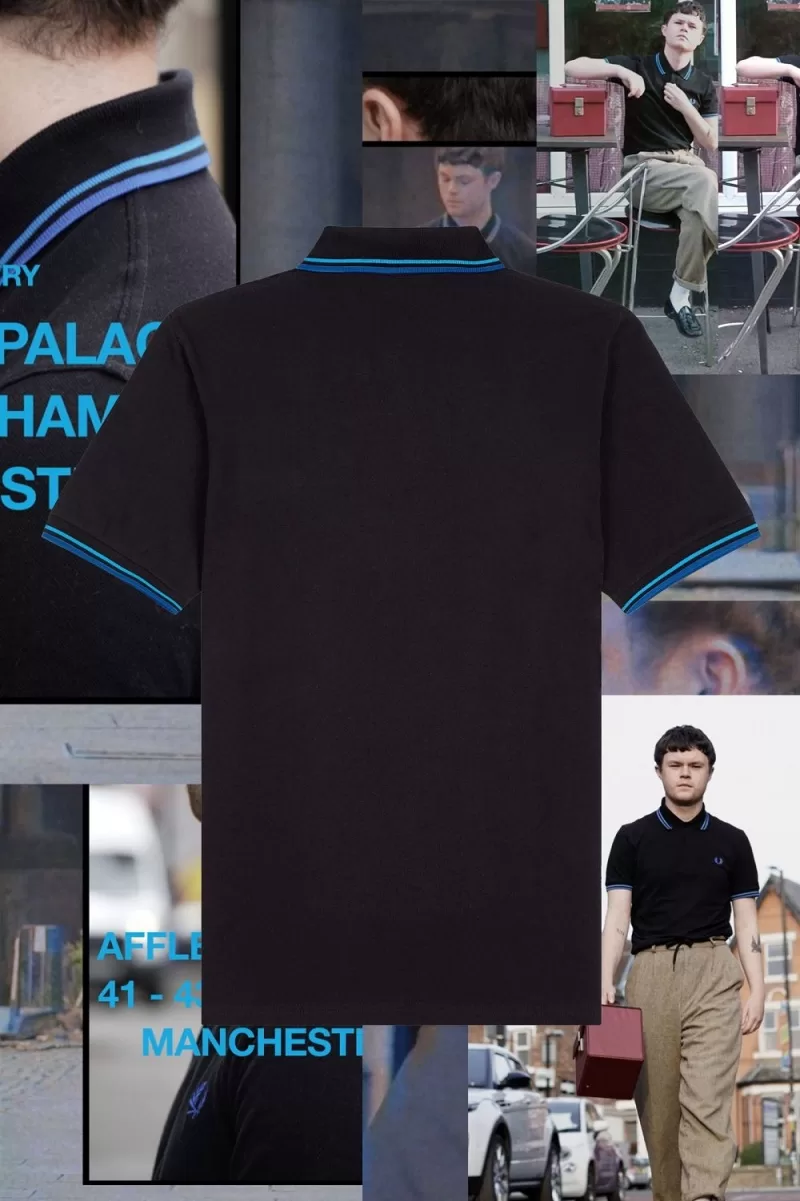 The original twin tipped Fred Perry Shirt. Made by expert hands in Leicester, England and adopting Fred’s signature streamlined fit. A special colourway, available exclusively online and in Fred Perry Manchester, the tipping references the blue colour card at the cotton factory Fred’s father worked at.