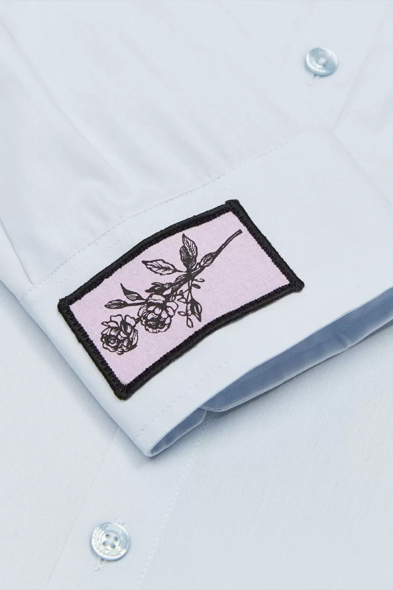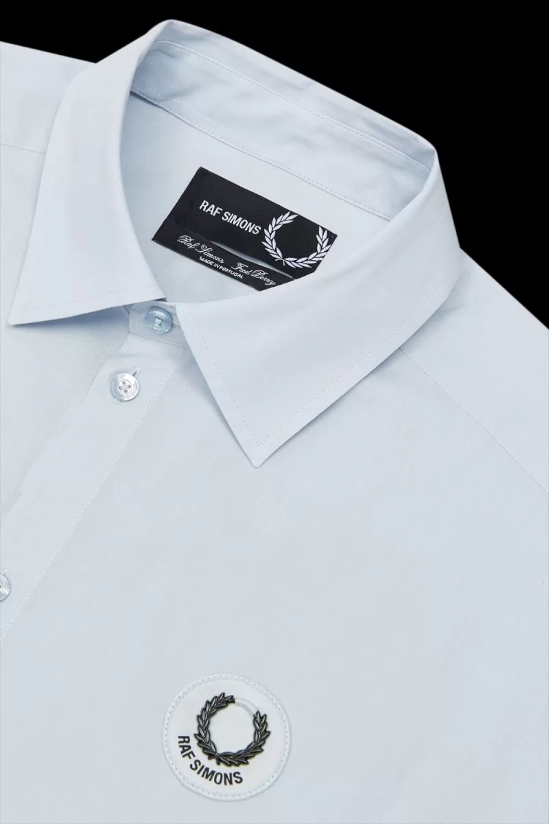 We collaborate with Raf Simons on an oversized shirt in refined cotton poplin manufactured in Portugal. Designed with bespoke embroidered patches and signed off with a metal Laurel Wreath and Raf Simons embroidery at the chest.
