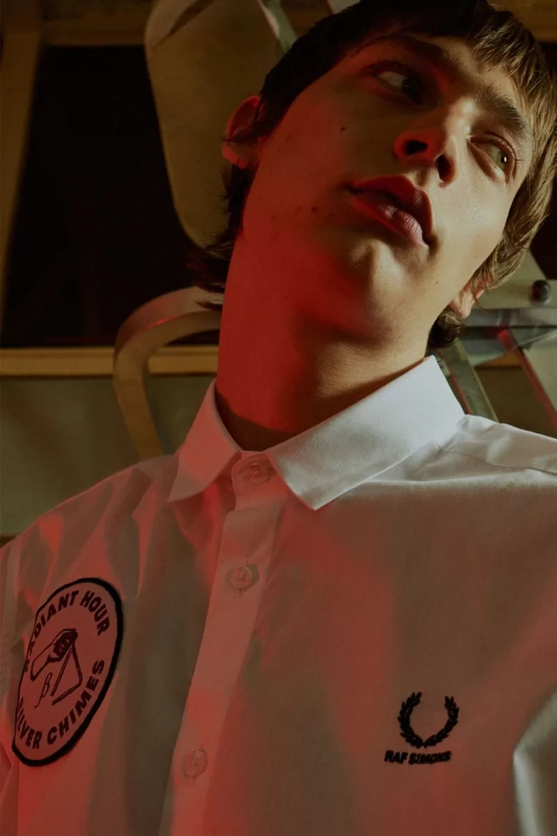 Raf Simons reinterprets familiar Fred Perry silhouettes with the sensibilities of his eponymous line and influenced by the music and culture of the North of England. Inspired by the British soul scene – a time when fashion, music and inclusivity collided, the collection is decorated with bespoke patches that reference the vinyl artwork of fictional soul records. Designed in Simons’ signature oversized silhouette, with graphic patches, our shirt combines conventional style with a rebellious spirit. To wear the Fred Perry x Raf Simons collection is to feel part of something – the power of youth and belonging.