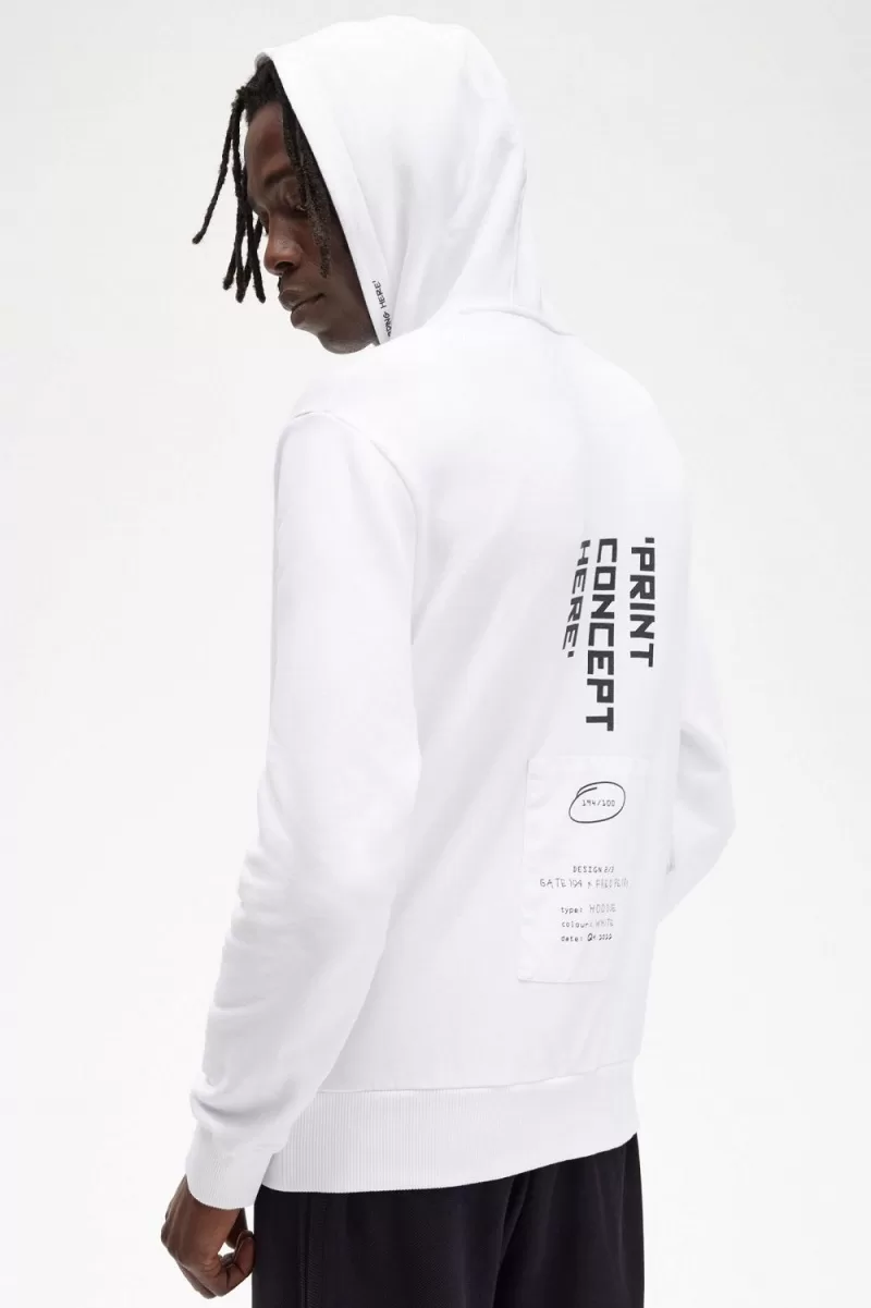 Fred Perry Printed Hooded Sweat Men’s Shirt White | BWFHS8035