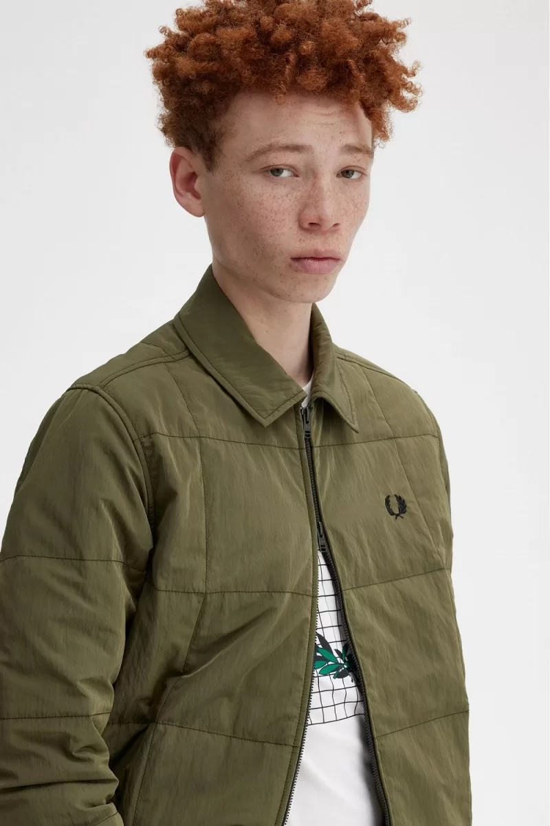 Our ubiquitous grid – influenced by the grids, nets, and chequerboards of sport – takes the form of square stitching on our quilted jacket. Designed to keep you warm after dark, when an extra layer means you can stay out for longer.