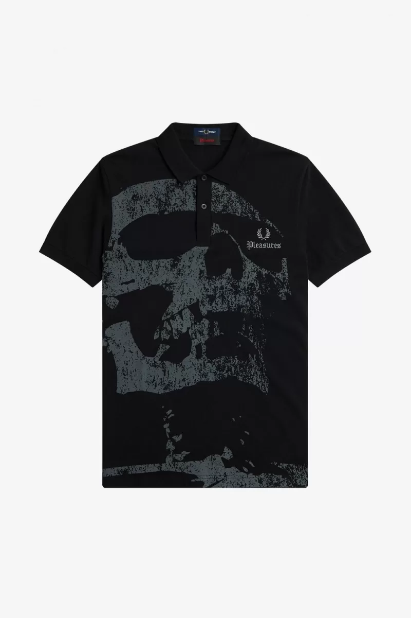 U.S. lifestyle brand Pleasures put their stamp on the Fred Perry shirt, inspired by the Los Angeles punk scene. Made in our signature fit and cotton pique, with graphic skull print and dual branding embroidery at the chest.