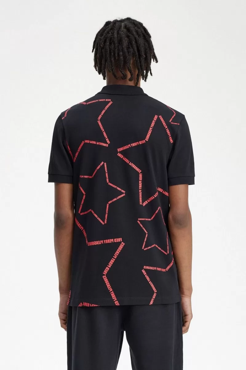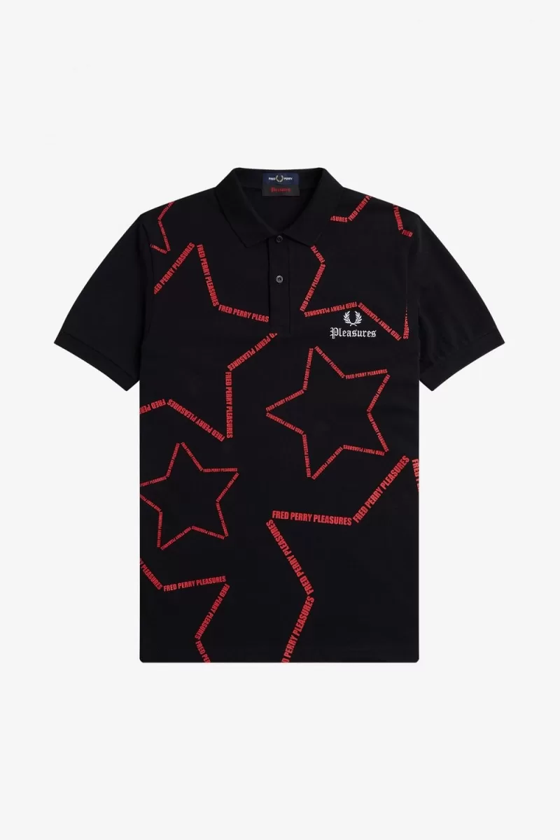 U.S. lifestyle brand Pleasures put their stamp on the Fred Perry shirt, inspired by the Los Angeles punk scene. Made in our signature fit and cotton pique, with graphic star print and dual branding embroidery at the chest.
