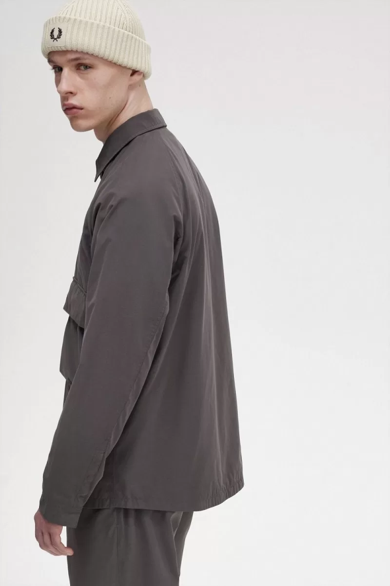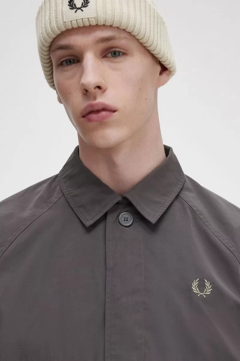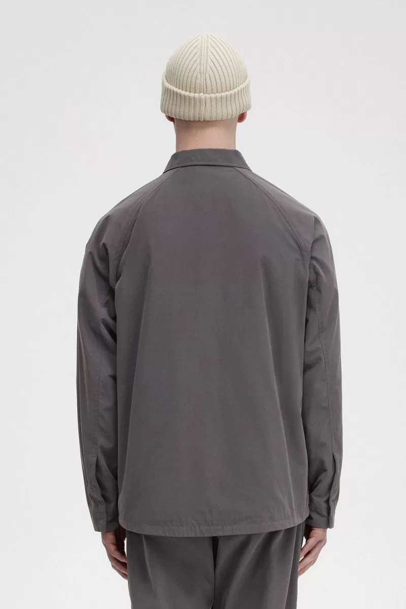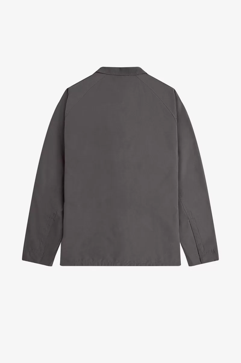 Cotton and polyester blend fabric / Classic fit with a curved hem and raglan sleeve / Button through design / Large patch pockets / Embroidered Laurel Wreath logo on the left hand chest