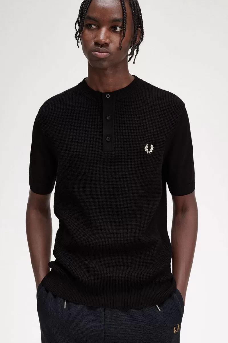 A wearable short sleeve henley shirt with a twist. Waffle stitch combed cotton is light, breathable, and a little bit special for spring and summer. Works for picnics, sports, holidays away, a nice meal out… and the local pub.