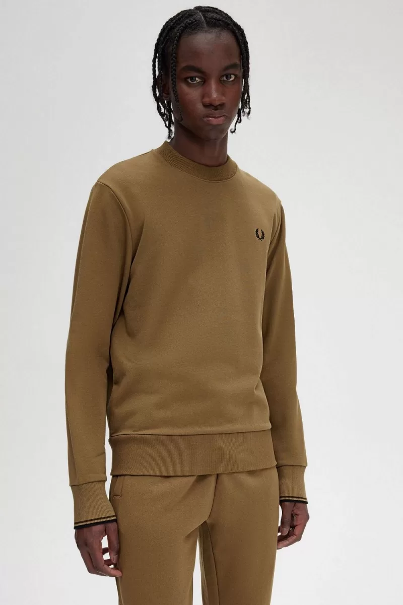 Adopted by sports players for winter training schedules, the cotton sweatshirt is a time-honoured classic. Our crew neck sweatshirt features subtle Fred Perry design details, with tipping at the cuffs and the ever-present Laurel Wreath embroidered on the chest. Built for layering.