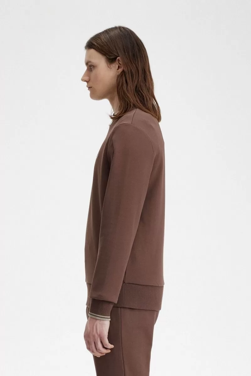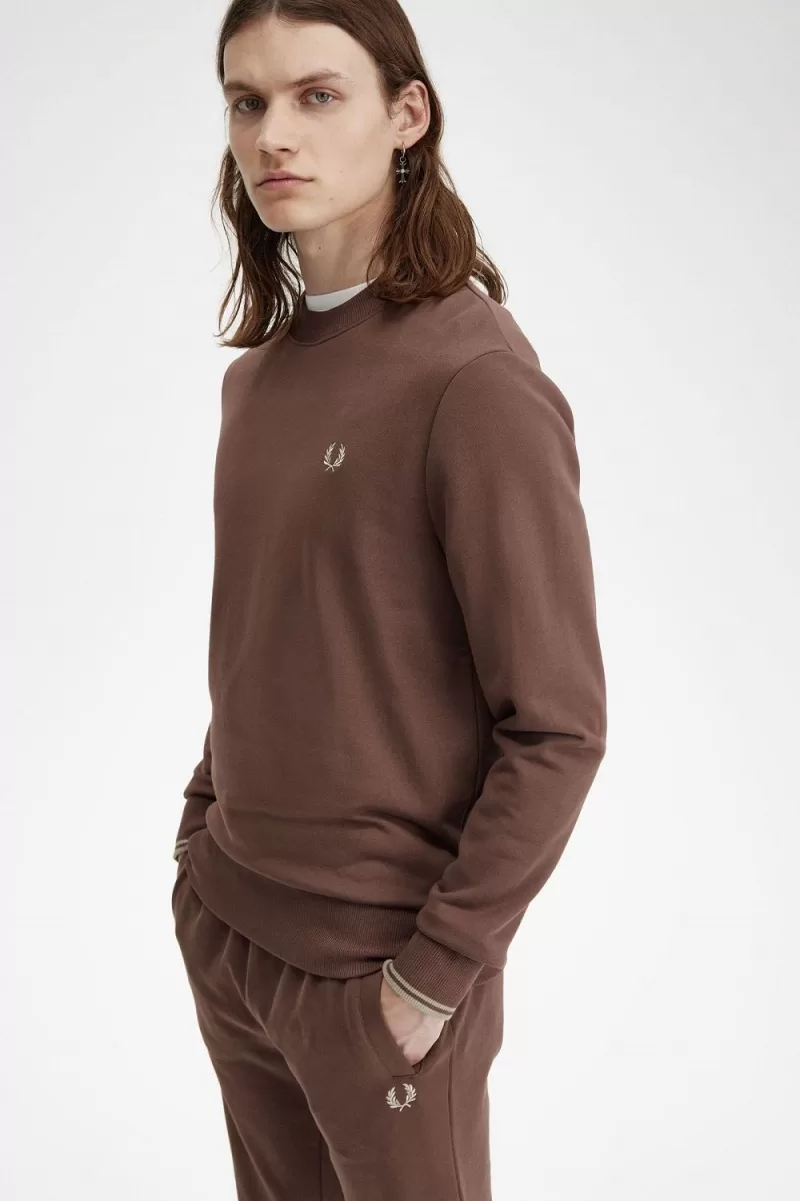 Fred Perry Crew Neck Men’s Sweatshirts Dark Red Warm Grey | SOJYB3974