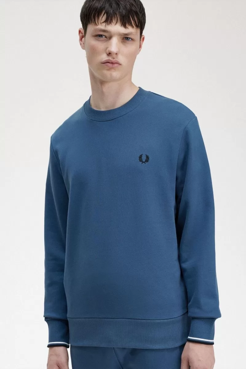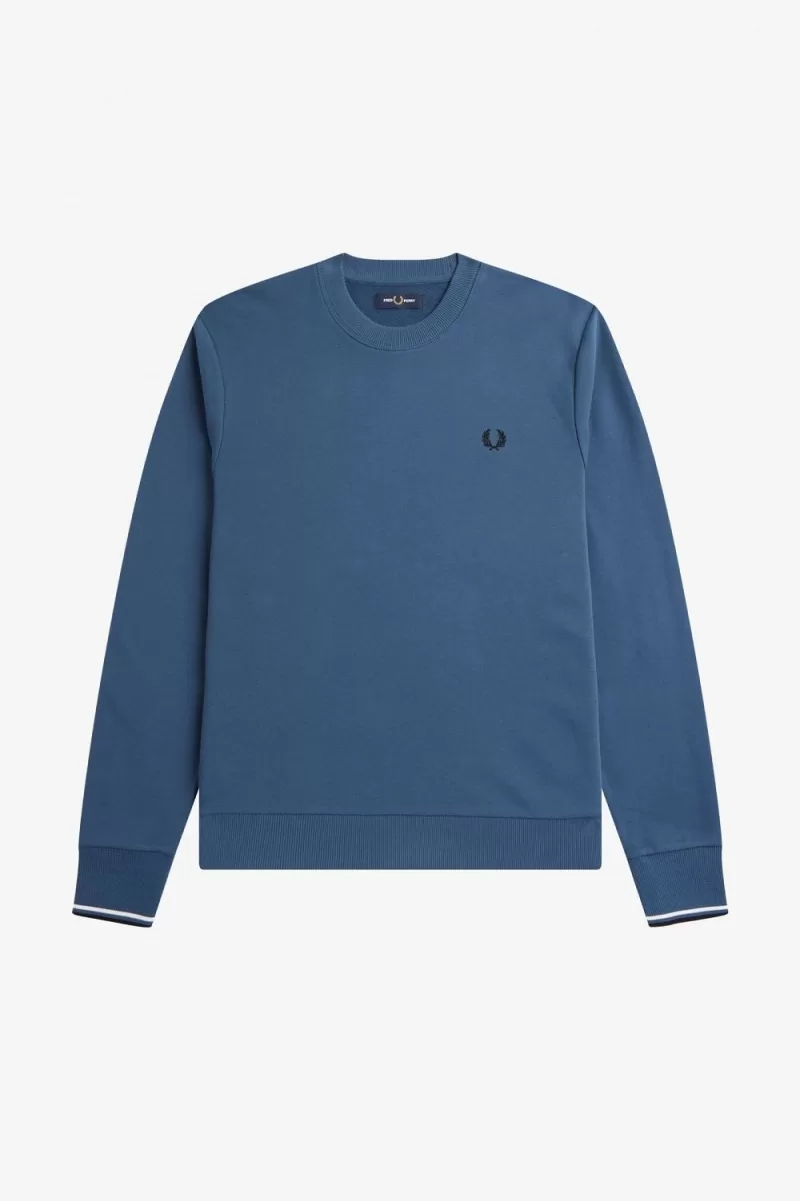 Adopted by sports players in winter training sessions, the cotton sweat is a time-honoured classic. Our crew neck sweatshirt features subtle Fred Perry design details, with tipping at the cuffs and the ever-present Laurel Wreath embroidered proudly on the chest. Built for layering.