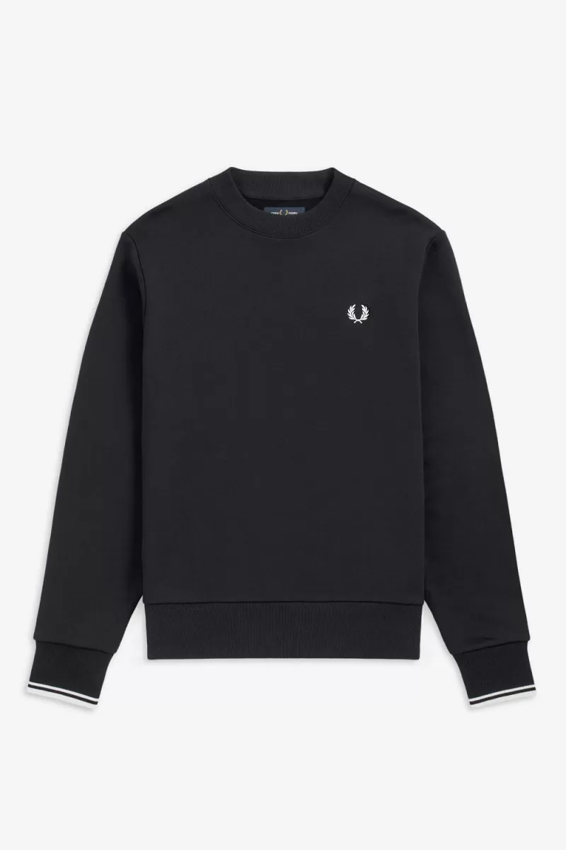 Adopted by sports-players in winter training sessions, the cotton sweatshirt is a sportswear classic. Ours features subtle Fred Perry design details, with twin tipping at the cuffs.