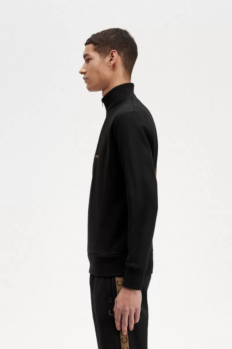 Fred Perry Double Graphic Half Zip Men’s Sweatshirts Black | ZUOBY5624