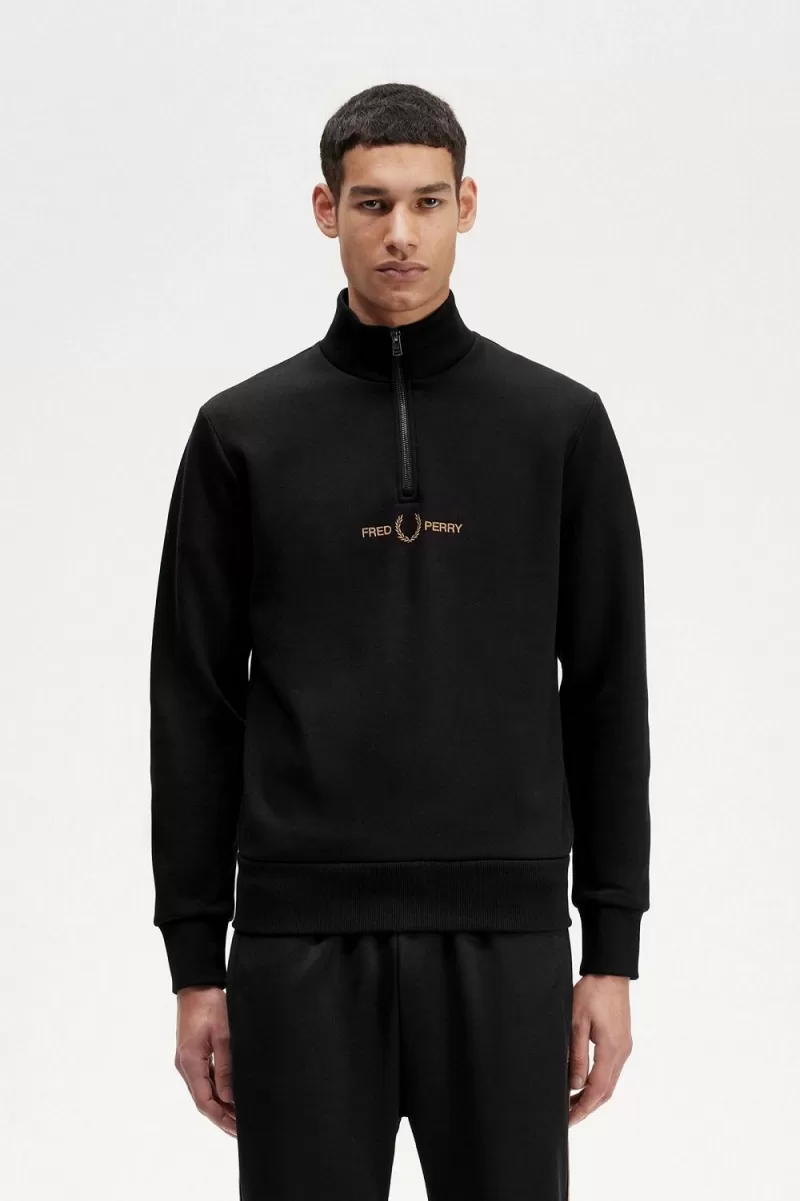 Home Fred Perry Men Fred Perry Men Clothing Fred Perry Men Clothing Sweatshirts Fred Perry Double Graphic Half Zip Men’s Sweatshirts Black | ZUOBY5624