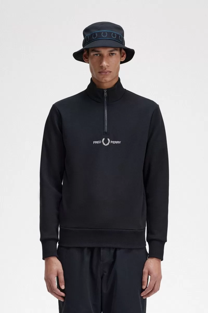4 reviews for Fred Perry Embroidered Half Zip Men’s Sweatshirts Black | FLMRD8015