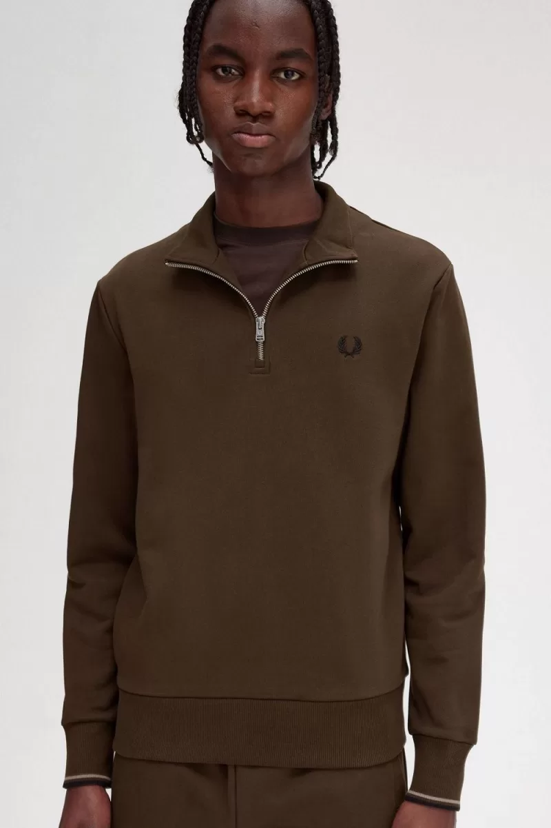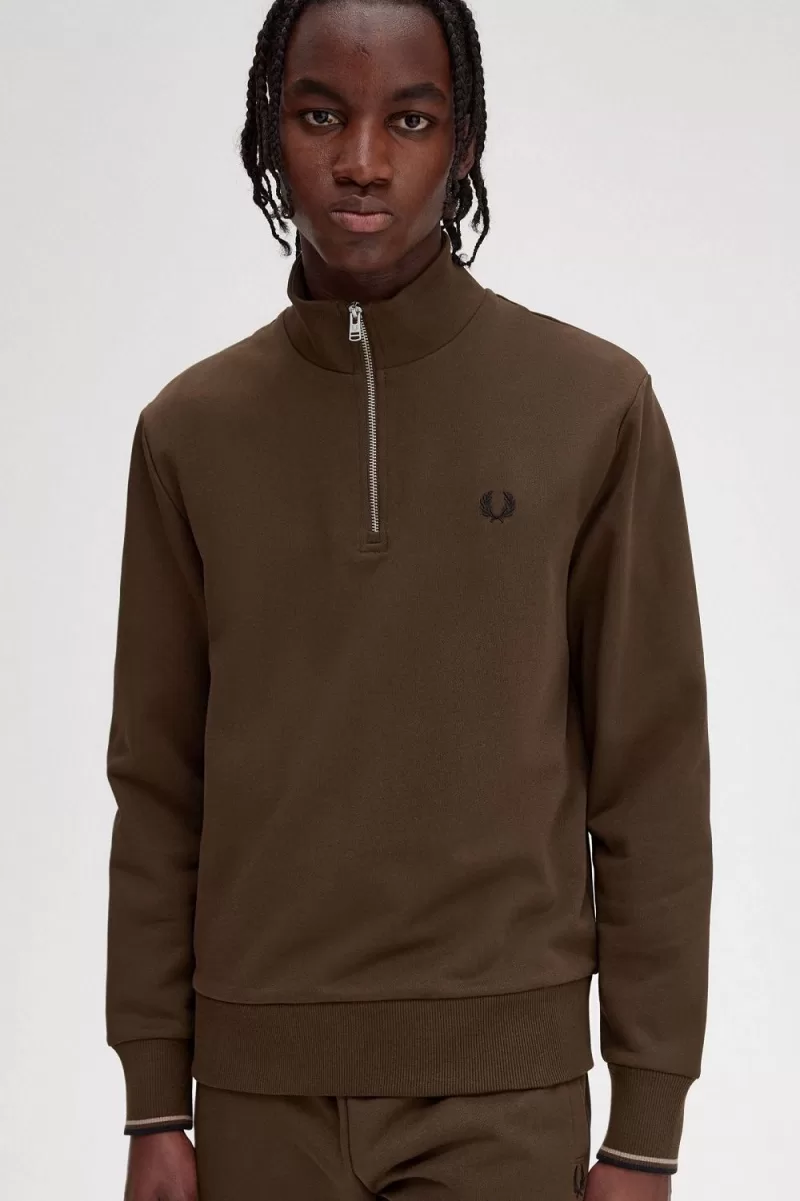 Our cotton funnel neck half-zip with twin tipping to the sleeves.