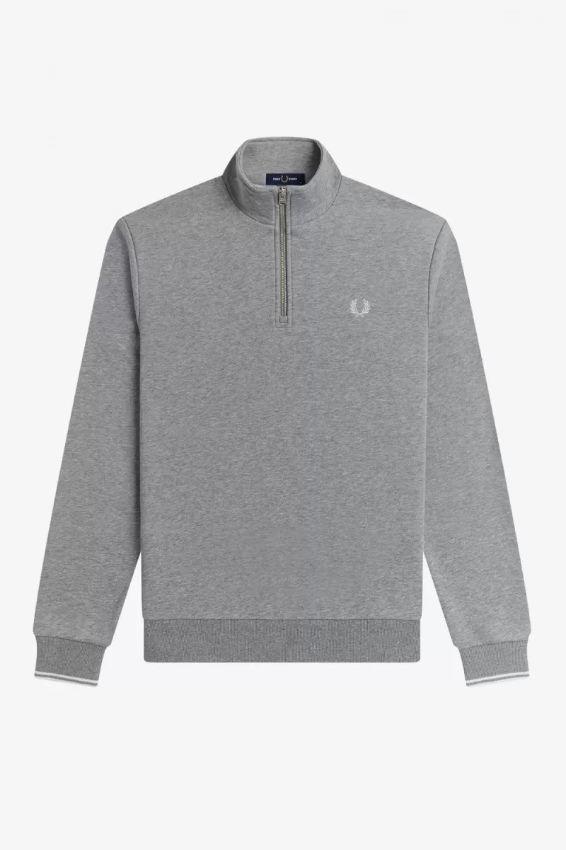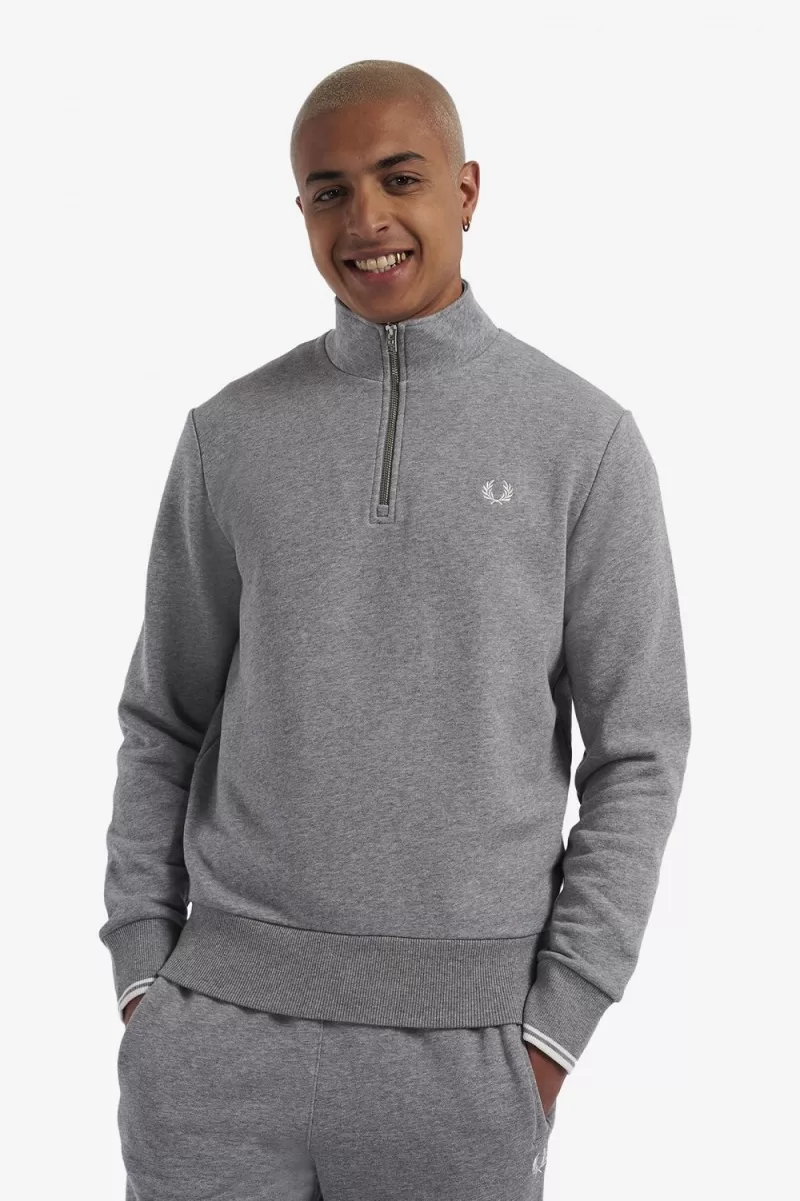 A stripped back Half Zip sweatshirt constructed from a cotton-rich blend and featuring signature Fred Perry detailing.