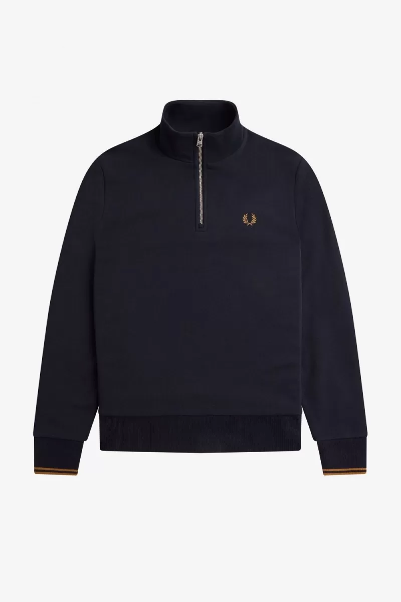 Fred Perry Half Zip Men’s Sweatshirts Navy Dark Coffee | KADUN1058