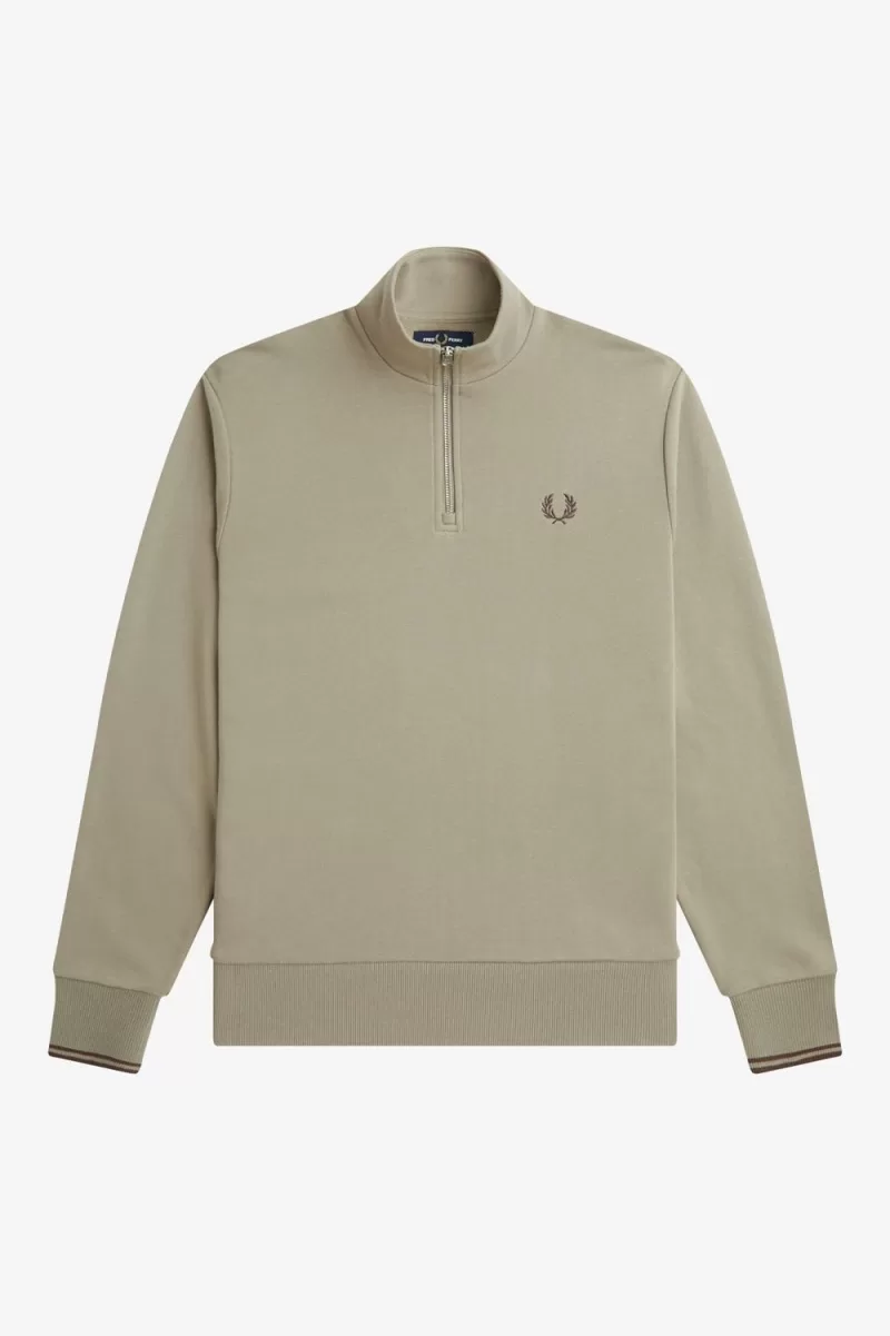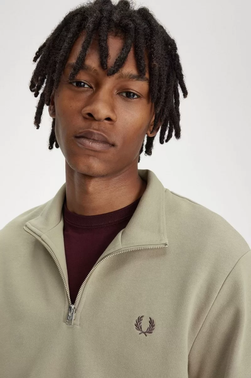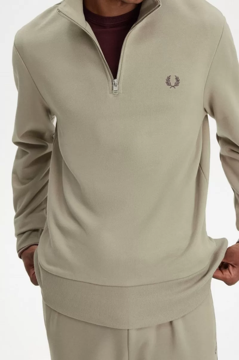 Home Fred Perry Men Fred Perry Men Clothing Fred Perry Men Clothing Sweatshirts Fred Perry Half Zip Men’s Sweatshirts Warm Grey Dark Red | ZWUPM7295