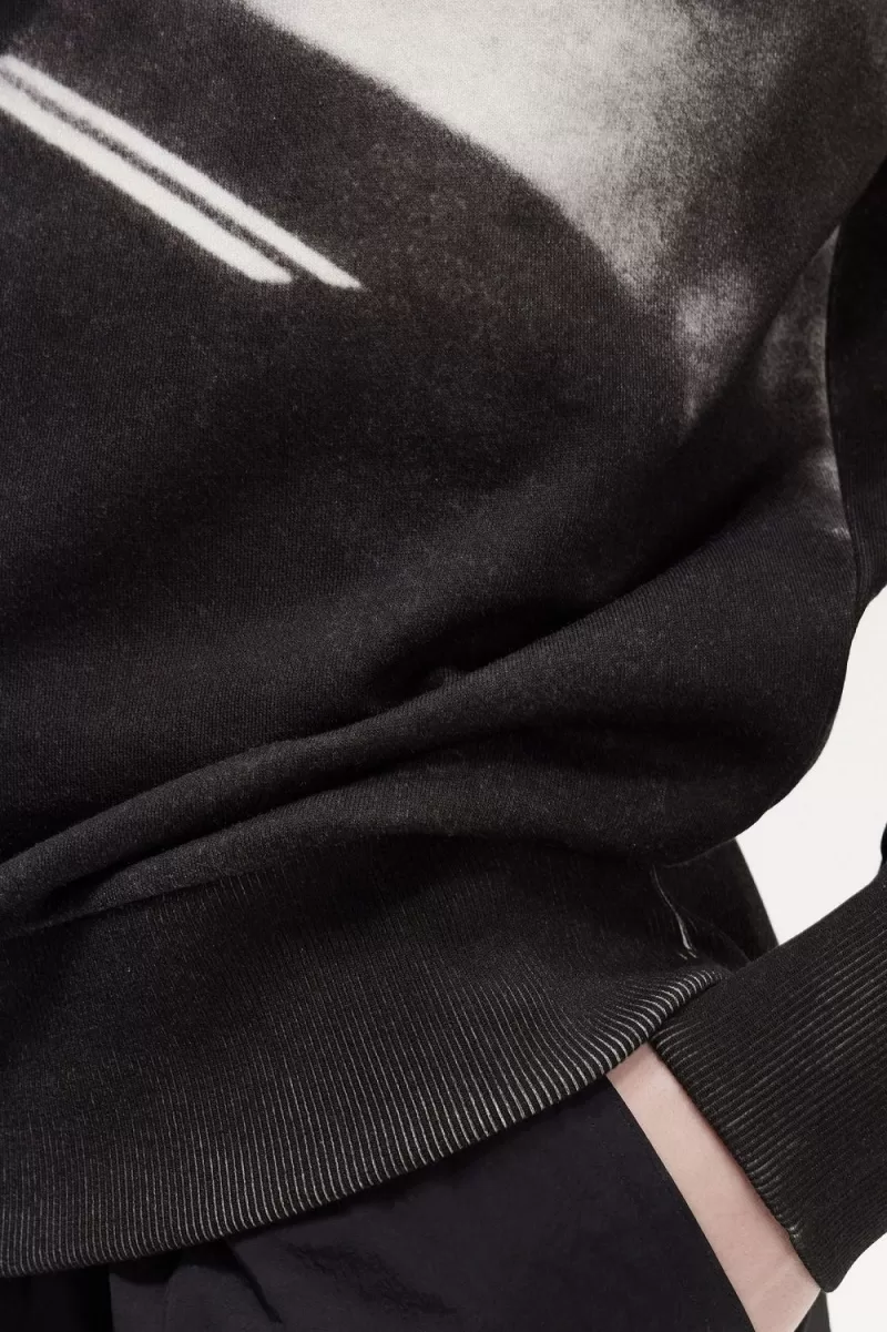 Cotton loopback fabric / Regular fit / Ribbed crew neck and cuffs / All over print / Embroidered Laurel Wreath logo to the left hand chest