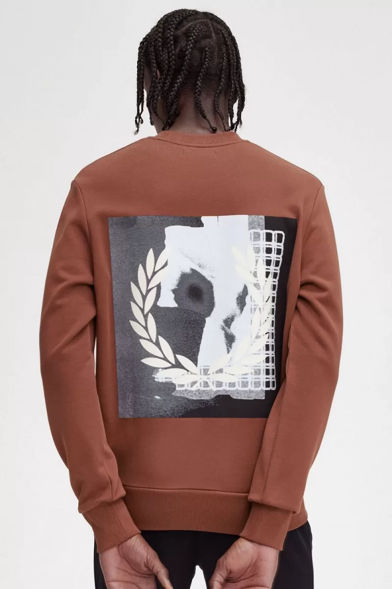 Fred Perry Rave Graphic Men’s Sweatshirts Whisky Brown | NRZLY8435