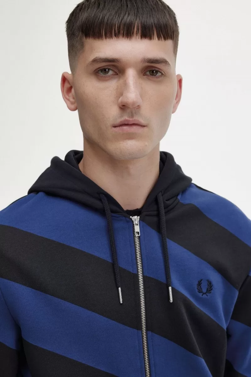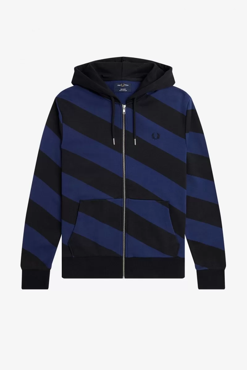 Our zip-through hooded sweatshirt, featuring a bold diagonal stripe design.