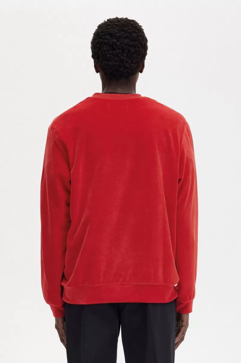 Cotton/polyester velour fabric / Regular fit with dropped shoulder / Rib neck, cuff and hem / Silver metal Laurel Wreath on left chest