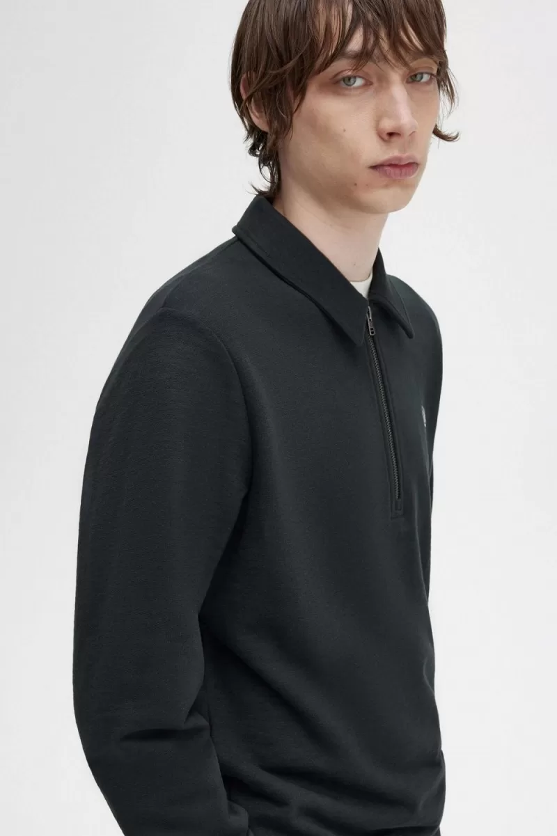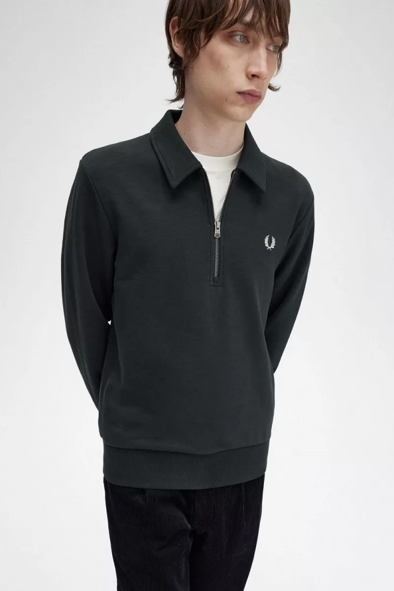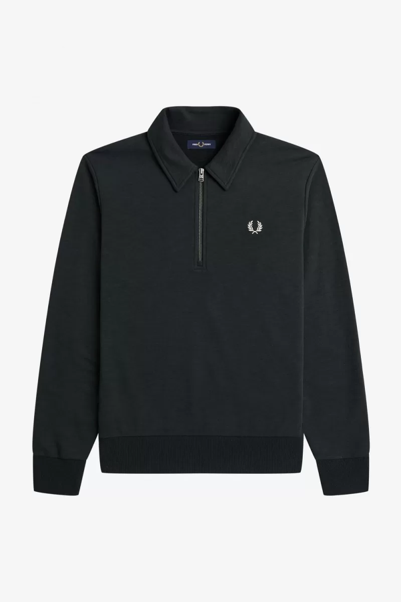 Our cotton French terry sweatshirt with a sharp collar, half zip, and branded puller.