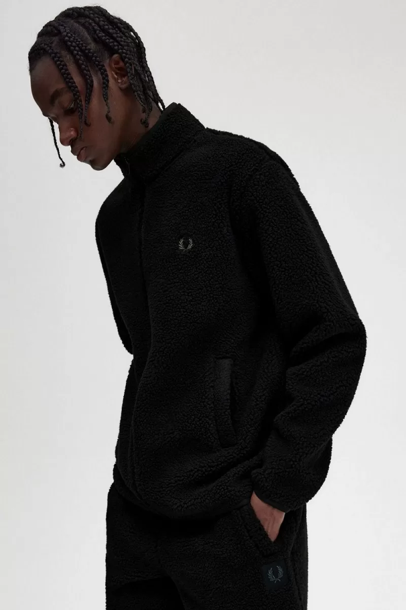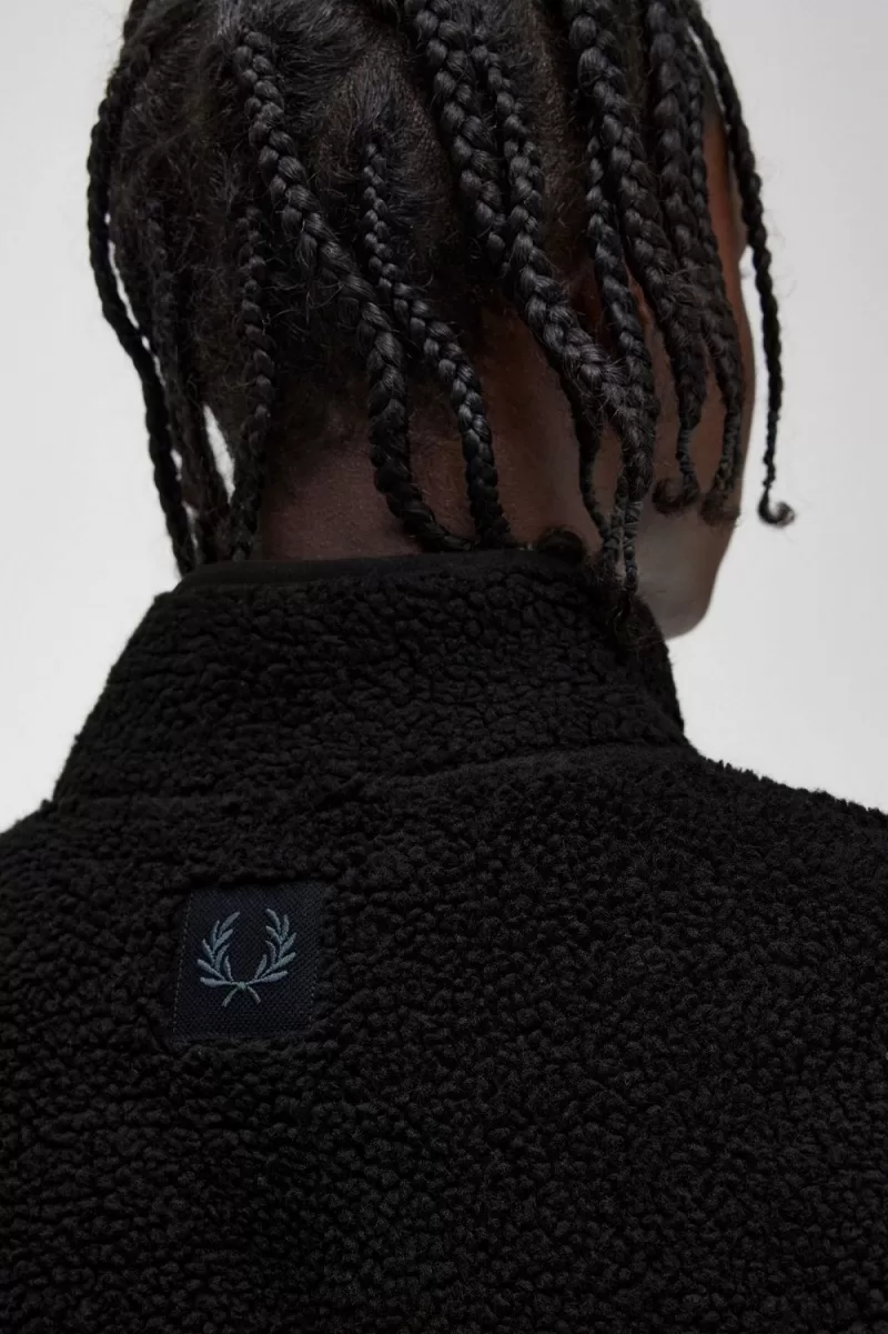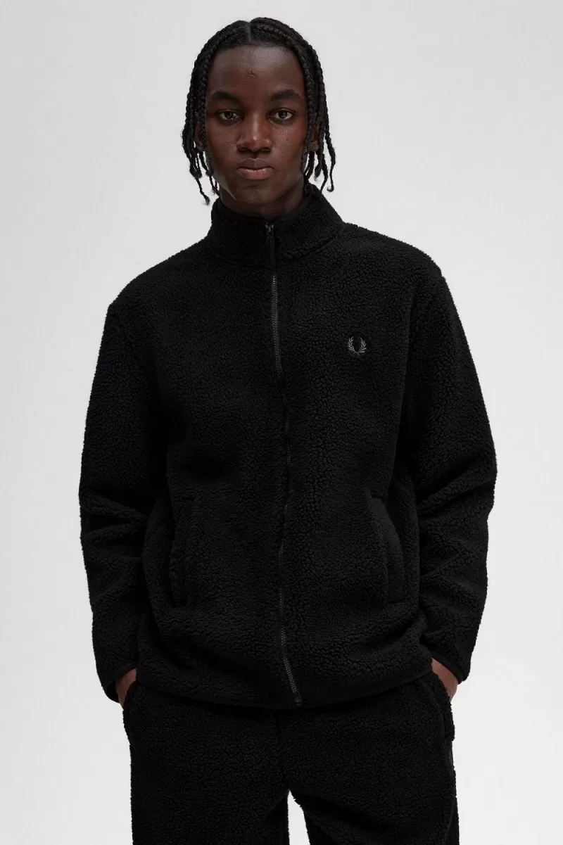 Recycled polyester borg fleece fabric / Classic fit / Side pockets / Self fabric funnel neck / Embroidered Laurel Wreath logo on the left hand chest