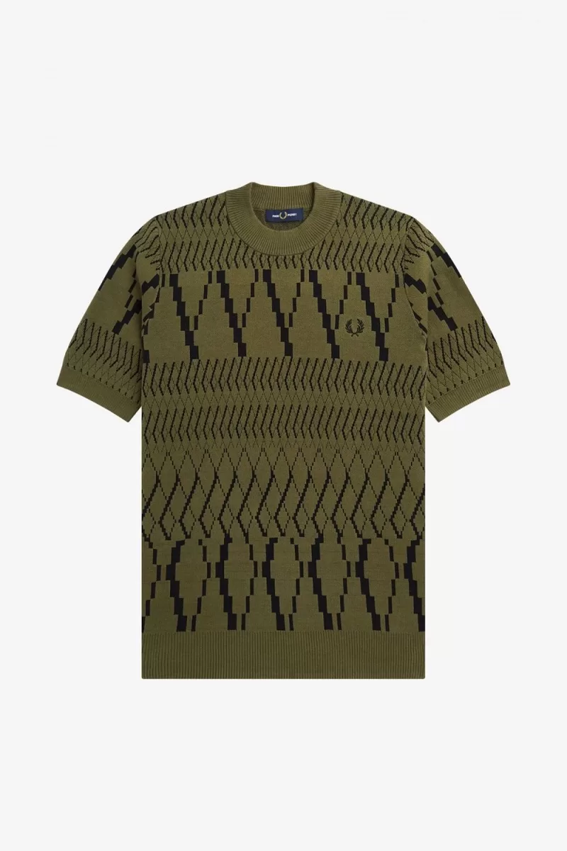 Fred Perry Argyle Panel Knitted Men’s T-Shirt Uniform Green | UJRNO3850