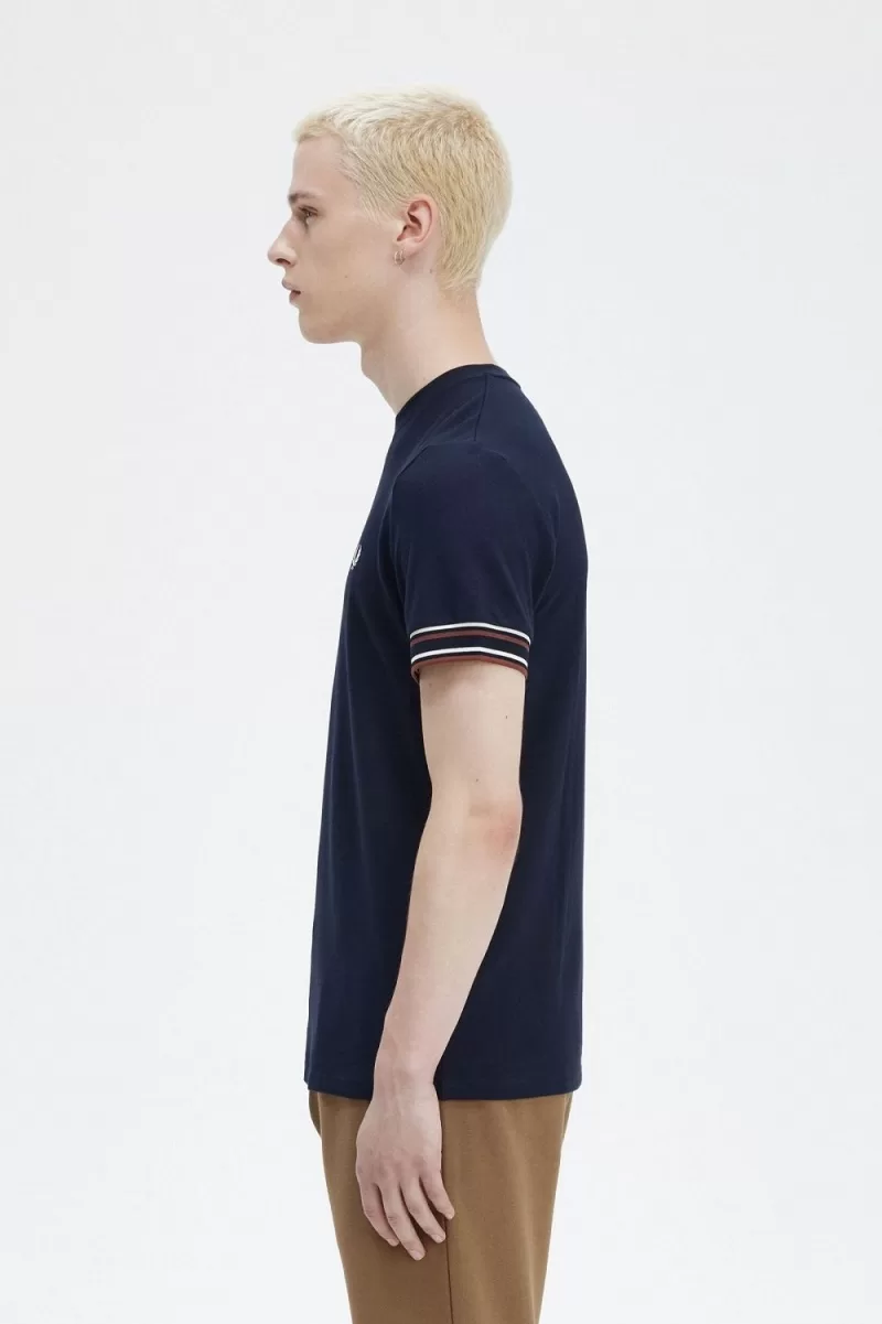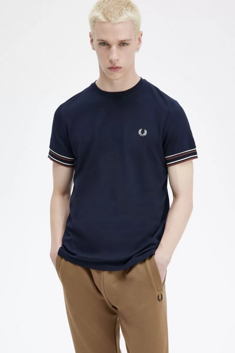 Fred Perry Bold Tipped Piqué Men’s T-Shirt Navy | MSXPC6281