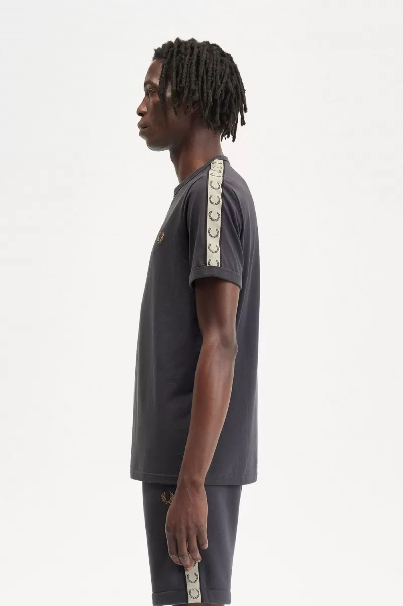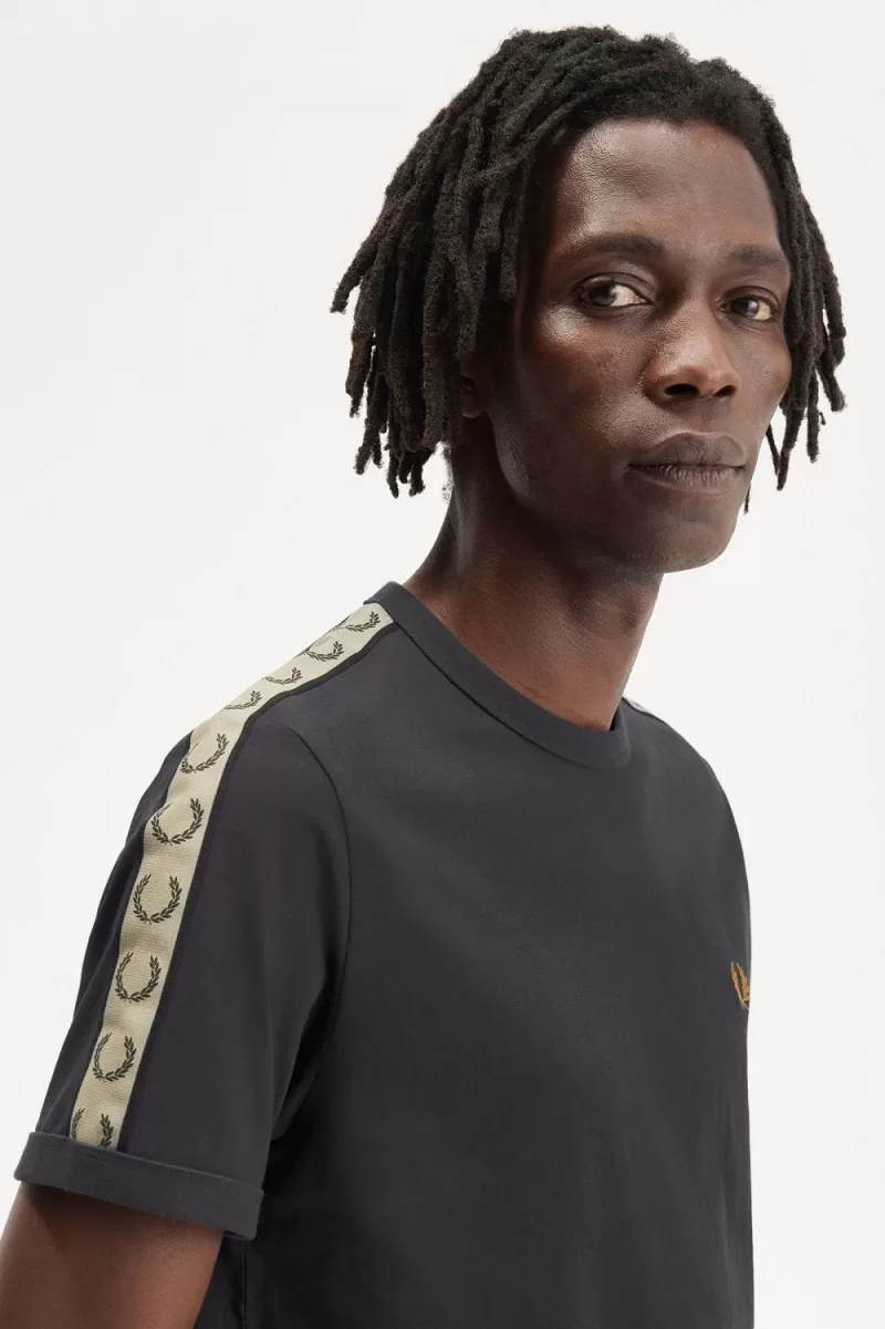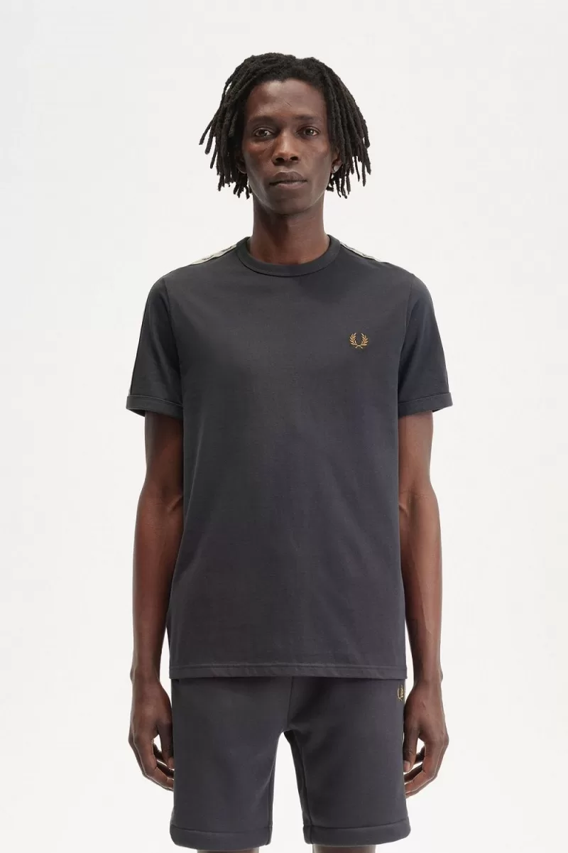 Fred Perry Contrast Tape Ringer Men’s T-Shirt Anchor Grey Black | PDZEF6392