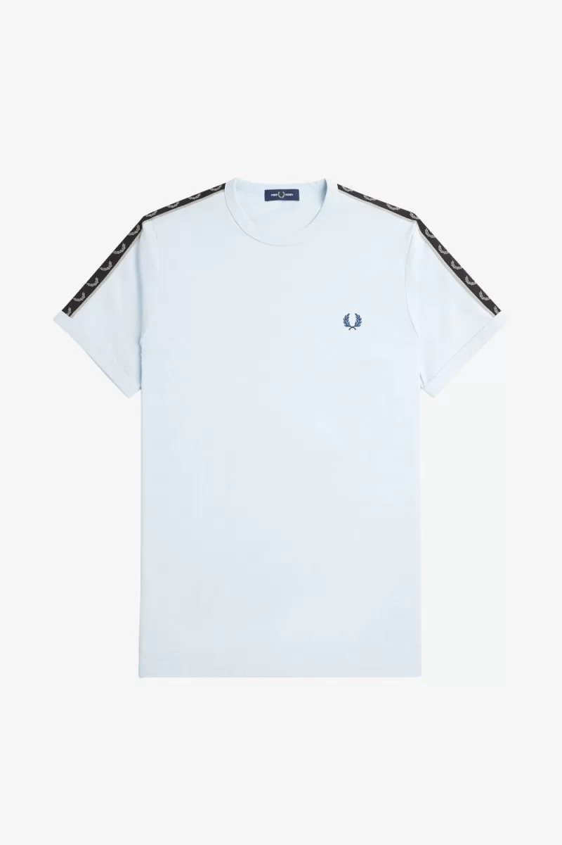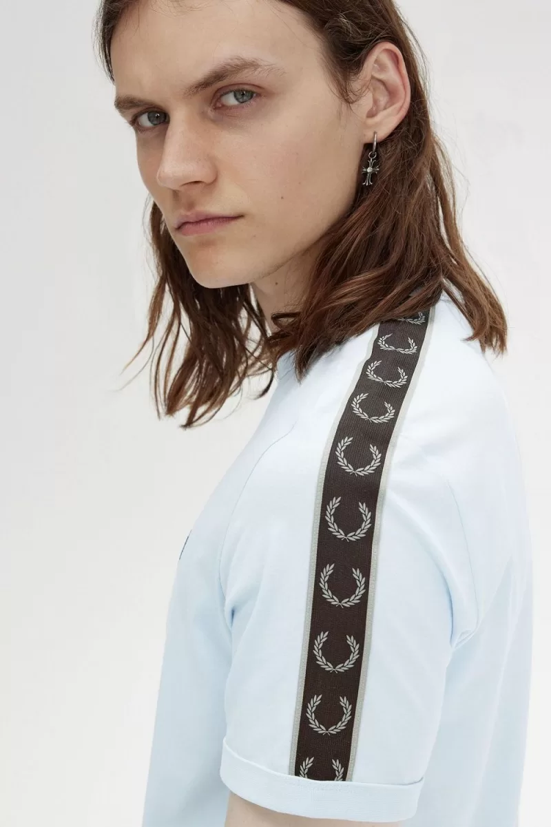 Our ringer t-shirt hasn’t changed much in the 50 years since its original design. This one features a Fred Perry staple – branded track tape to the shoulder and sleeve, a functional sporting detail used through the decades to protect seams and express team logos and colours.